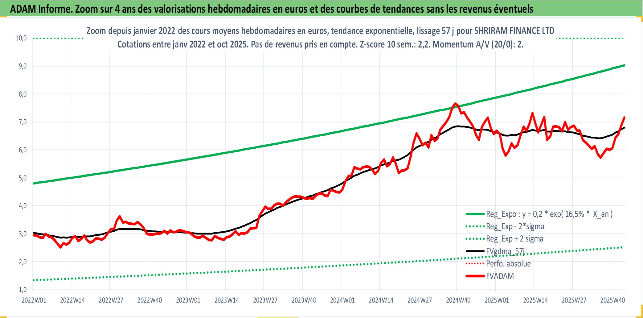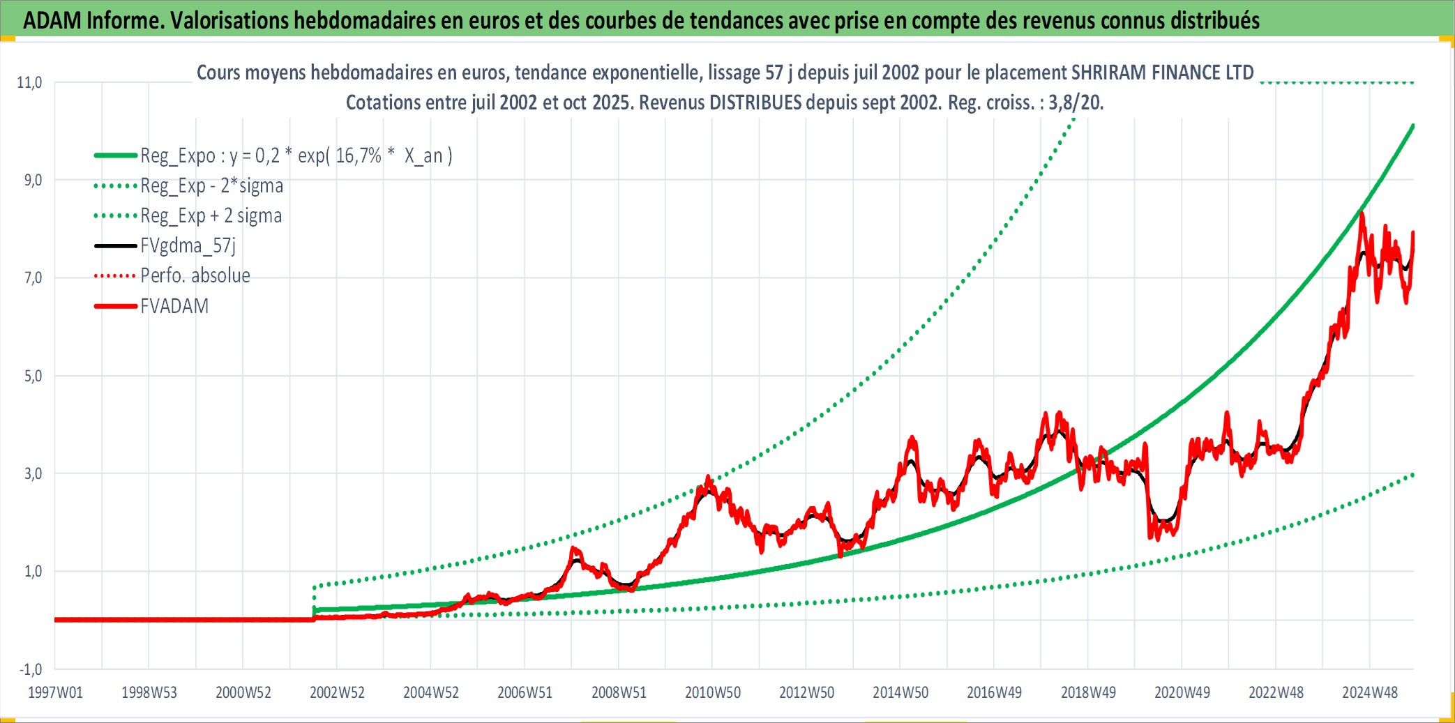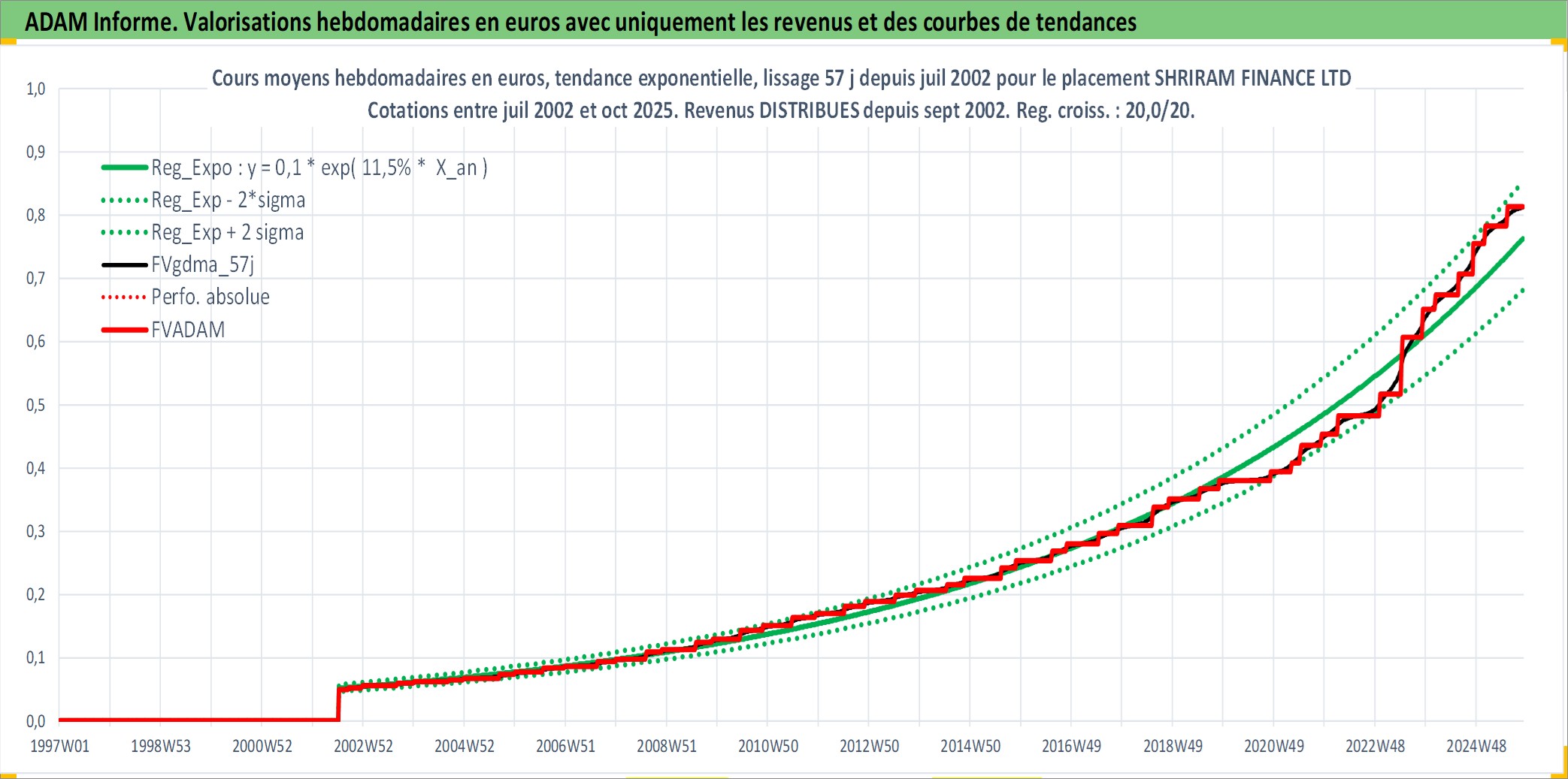 Site dédié aux investisseursPage dédiée sur site financeAnalyse des valorisations hebdomadaires de l'action SHRIRAM FINANCE LTD. Cet actif est cote en INR. Les valorisations sont en contrevaleur EURO et couvrent les semaines 2002W27 a 2025W44. Les revenus de cet actif financier sont pris en compte depuis la semaine 2002W37. La note ESG de cet actif n'est pas connue.