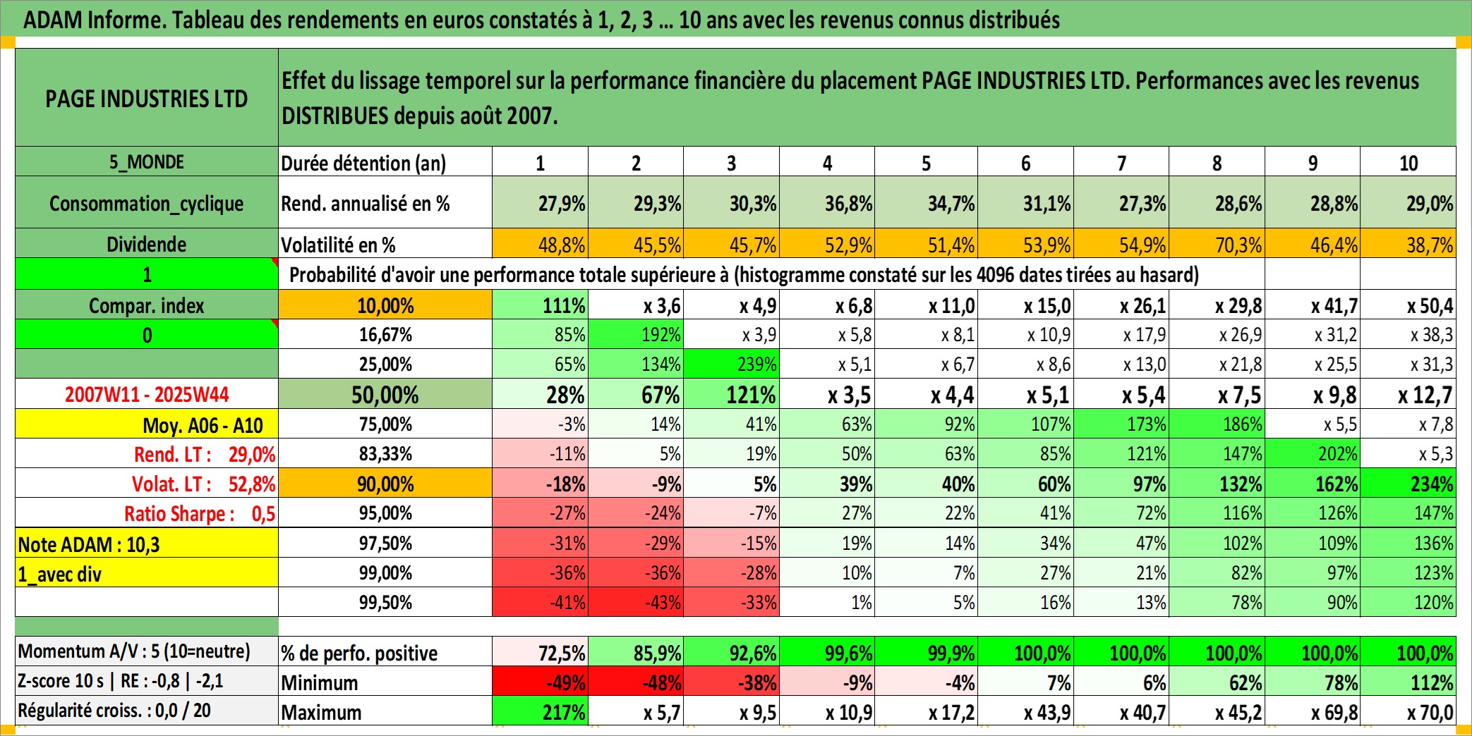 Dernière perfo 10 ans en %