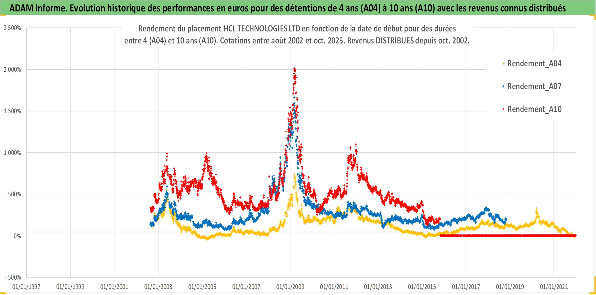 Site dédié aux investisseursPage dédiée sur site financeAnalyse des valorisations hebdomadaires de l'action HCL TECHNOLOGIES LTD. Cet actif est cote en INR. Les valorisations sont en contrevaleur EURO et couvrent les semaines 2002W33 a 2025W44. Les revenus de cet actif financier sont pris en compte depuis la semaine 2002W42. La note globale ESG de cet actif est estimee a 15.0 (apres rebasage entre 0 et 20).