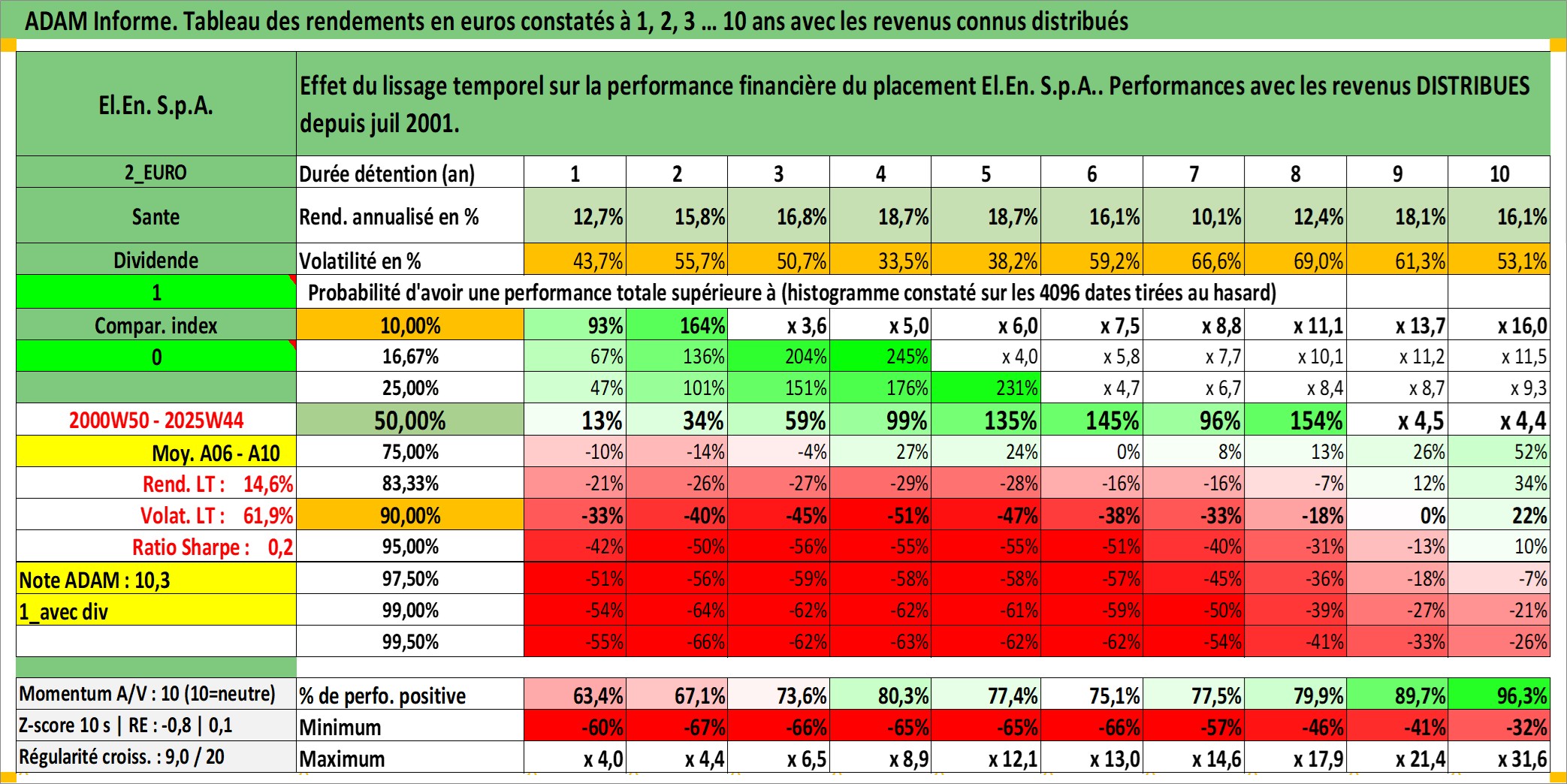 Site dédié aux investisseursPage dédiée sur site financeAnalyse des valorisations hebdomadaires de l'action El.En. S.p.A.. Cet actif est cote en EUR. Les valorisations couvrent les semaines 2000W50 a 2025W44. Les revenus de cet actif financier sont pris en compte depuis la semaine 2001W30. La note ESG de cet actif n'est pas connue.