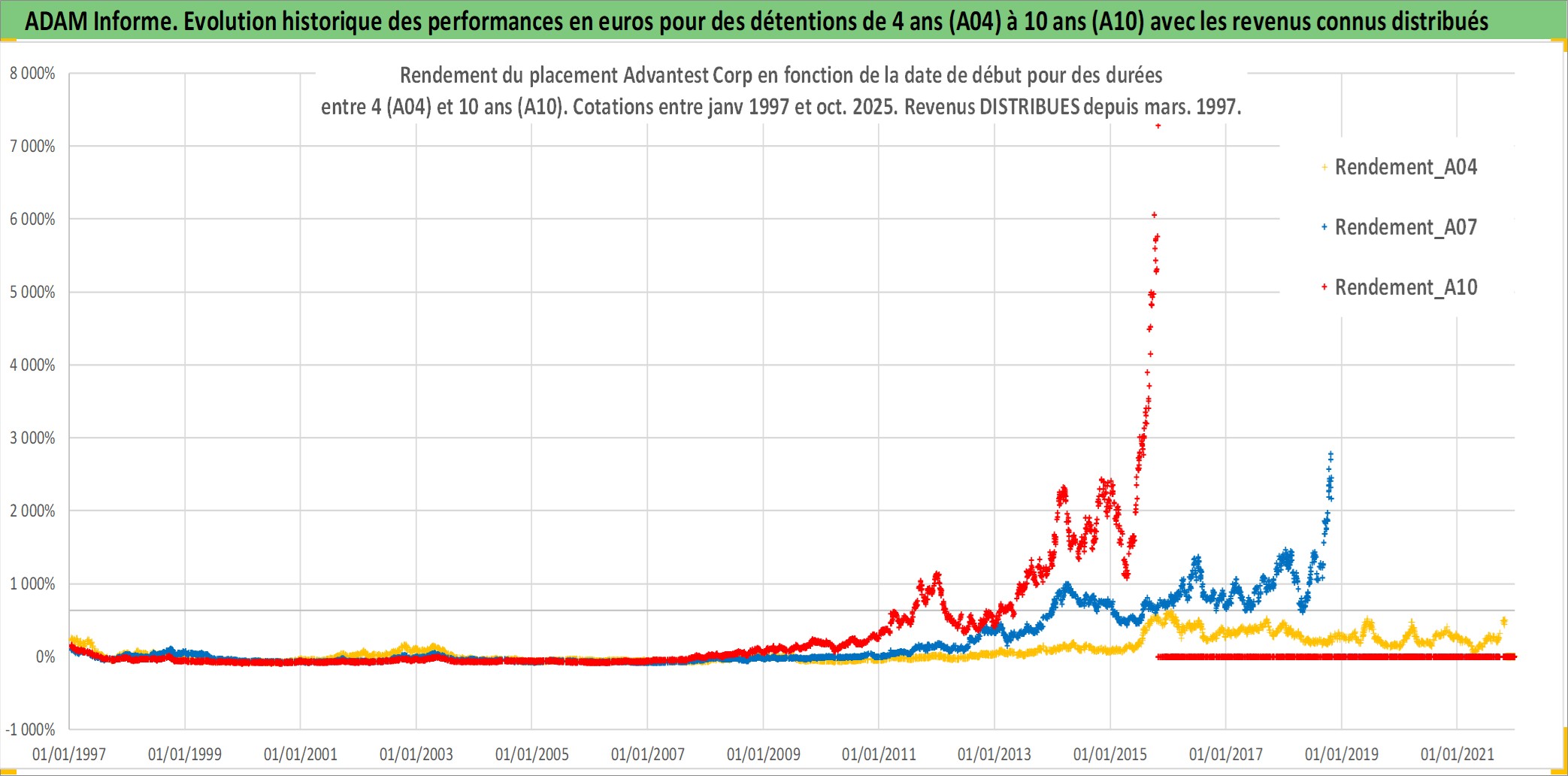 Site dédié aux investisseursPage dédiée sur site financeAnalyse des valorisations hebdomadaires de l'action Advantest Corp. Cet actif est cote en JPY. Les valorisations sont en contrevaleur EURO et couvrent les semaines 1997W01 a 2025W44. Les revenus de cet actif financier sont pris en compte depuis la semaine 1997W13. La note ESG de cet actif n'est pas connue.