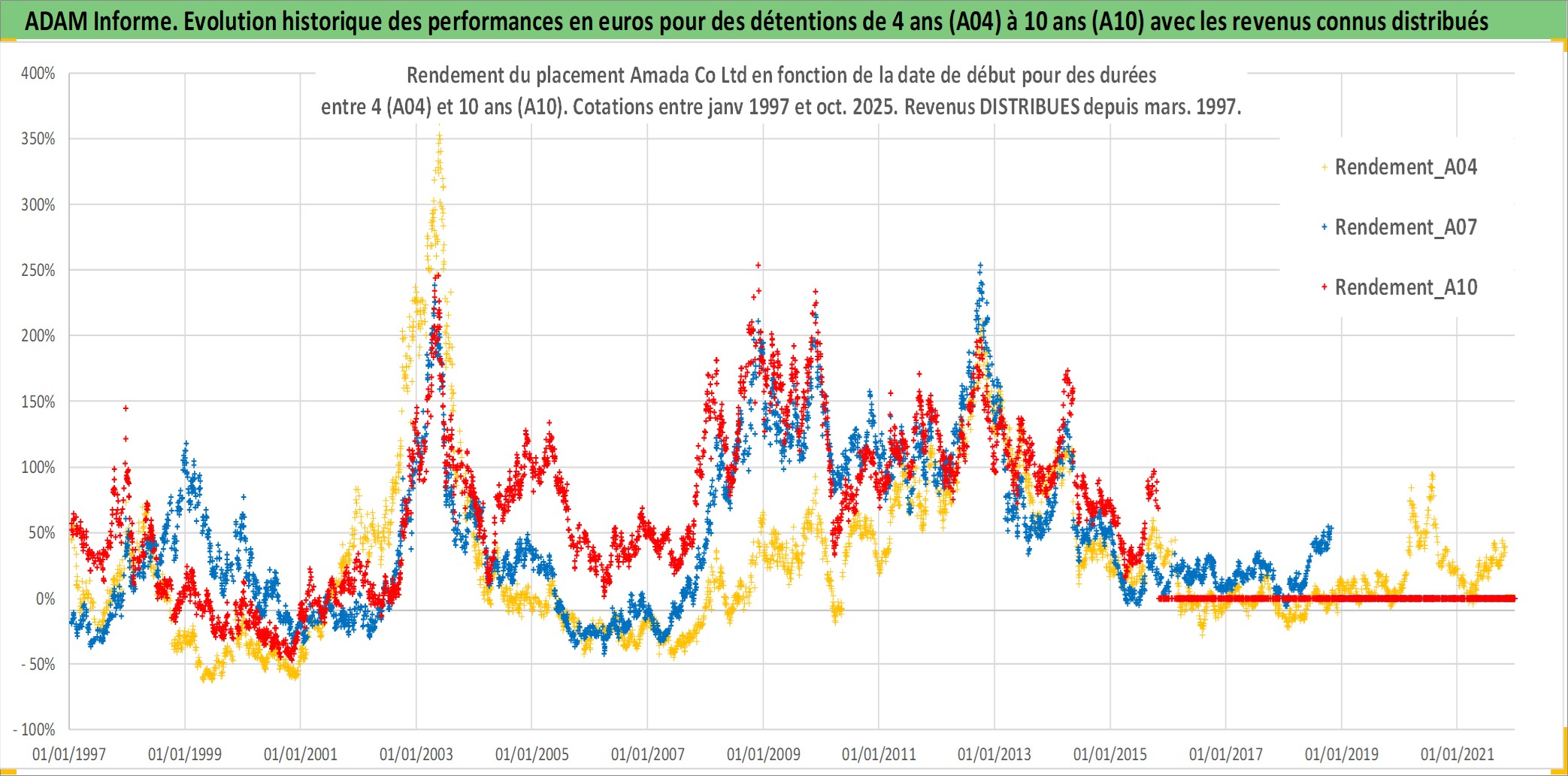 Site dédié aux investisseursPage dédiée sur site financeAnalyse des valorisations hebdomadaires de l'action Amada Co Ltd. Cet actif est cote en JPY. Les valorisations sont en contrevaleur EURO et couvrent les semaines 1997W01 a 2025W44. Les revenus de cet actif financier sont pris en compte depuis la semaine 1997W13. La note ESG de cet actif n'est pas connue.