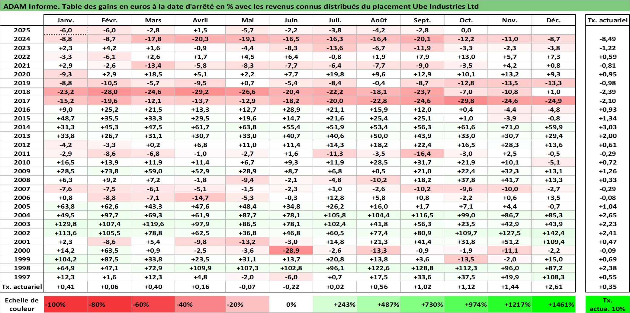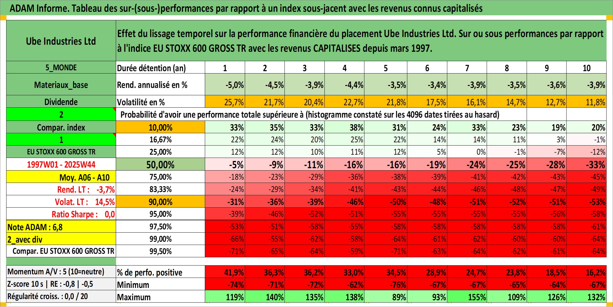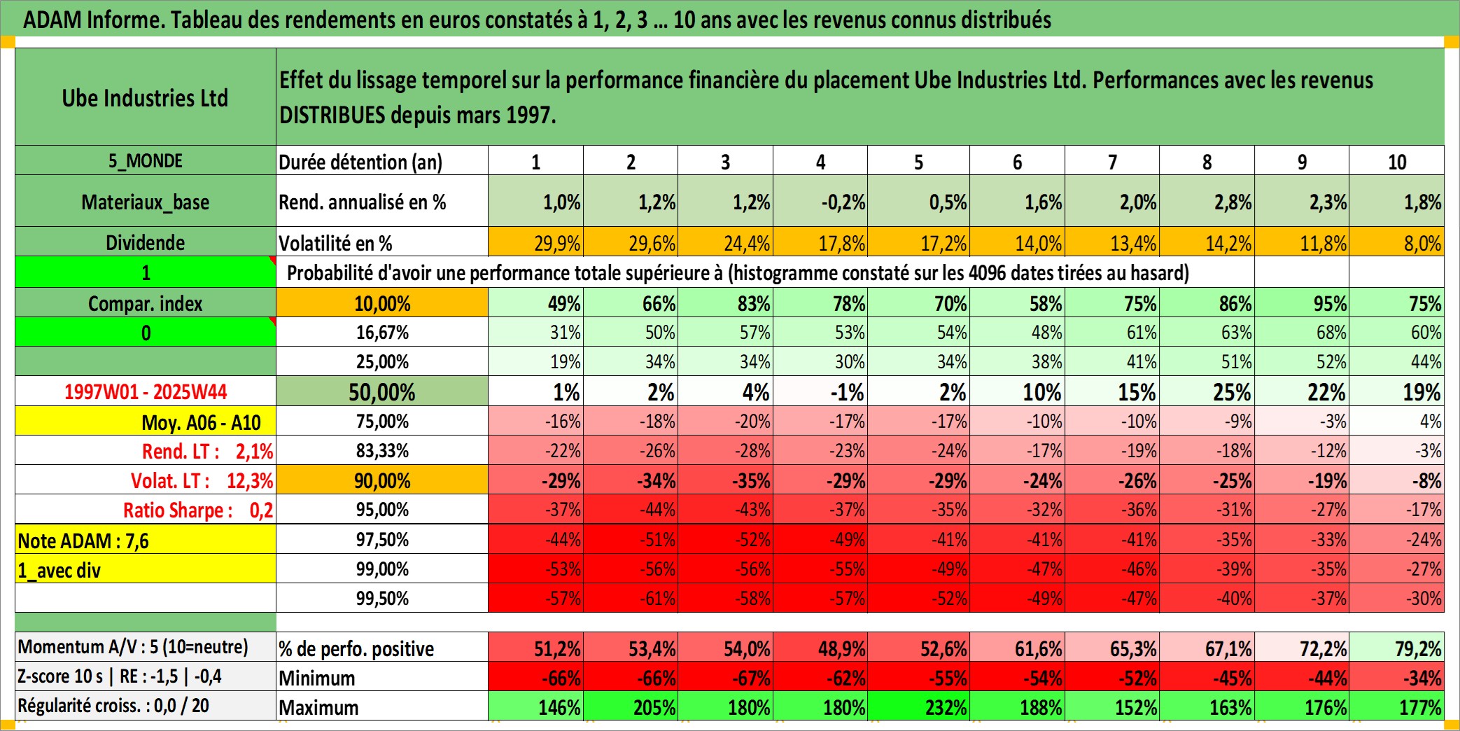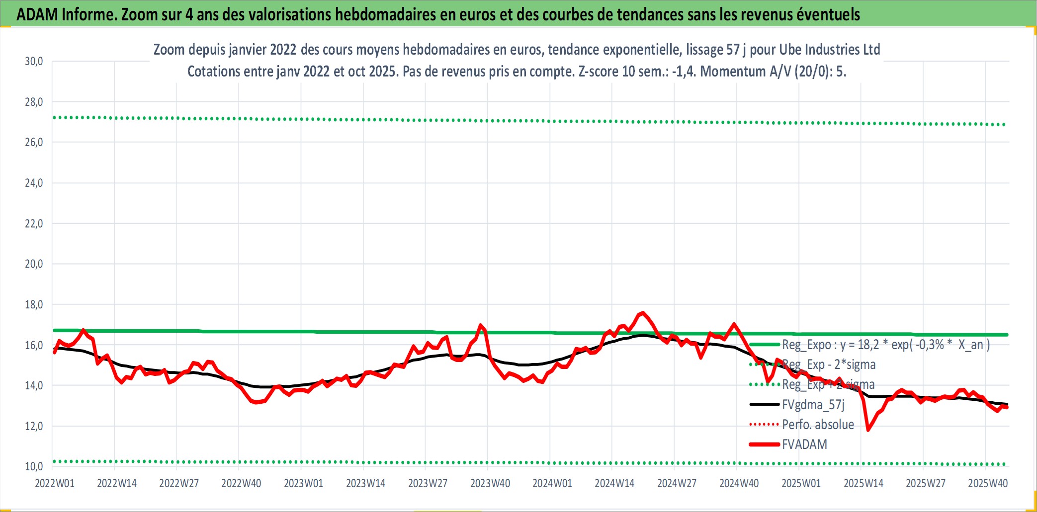 Site dédié aux investisseursPage dédiée sur site financeAnalyse des valorisations hebdomadaires de l'action Ube Industries Ltd. Cet actif est cote en JPY. Les valorisations sont en contrevaleur EURO et couvrent les semaines 1997W01 a 2025W44. Les revenus de cet actif financier sont pris en compte depuis la semaine 1997W13. La note ESG de cet actif n'est pas connue.