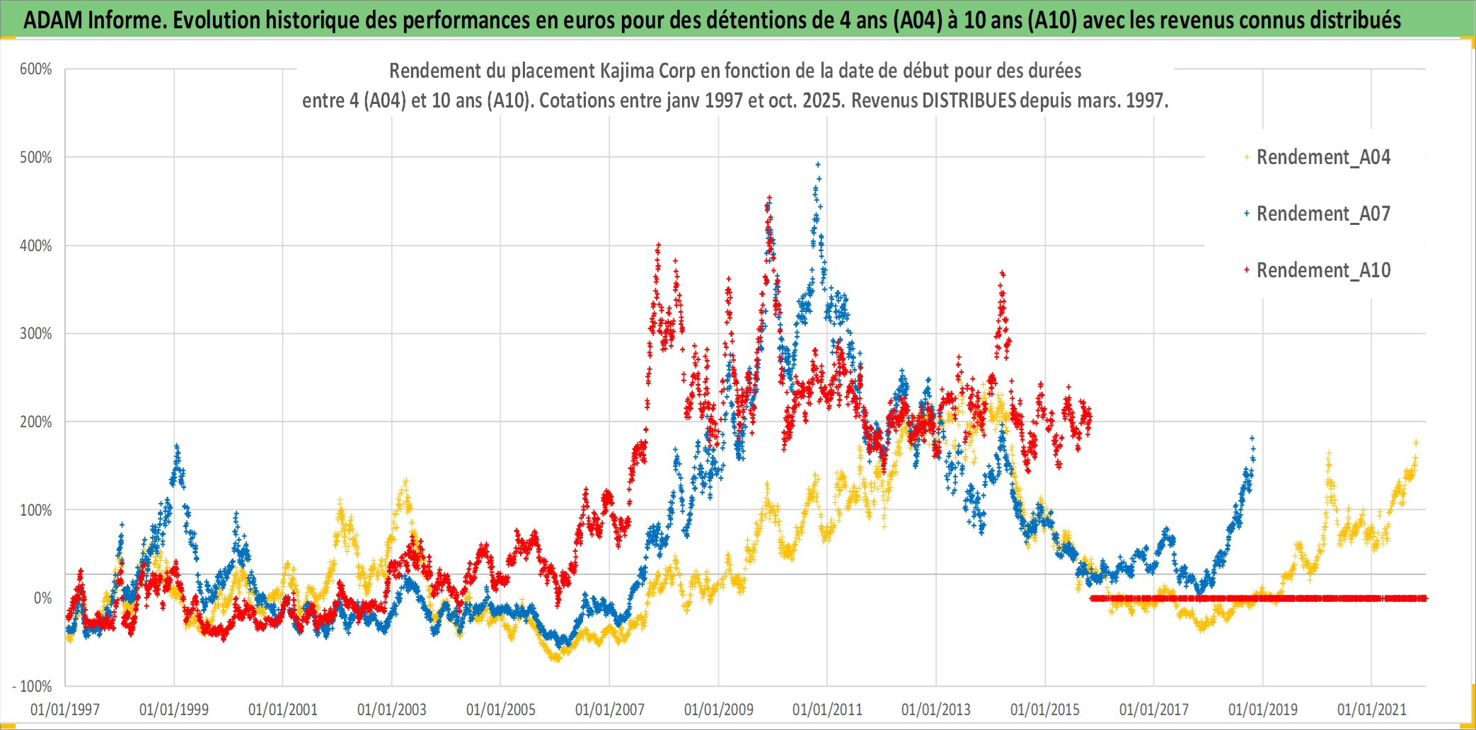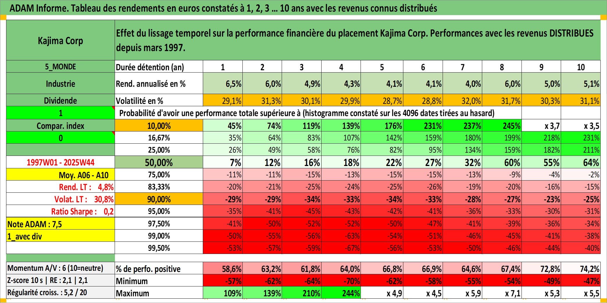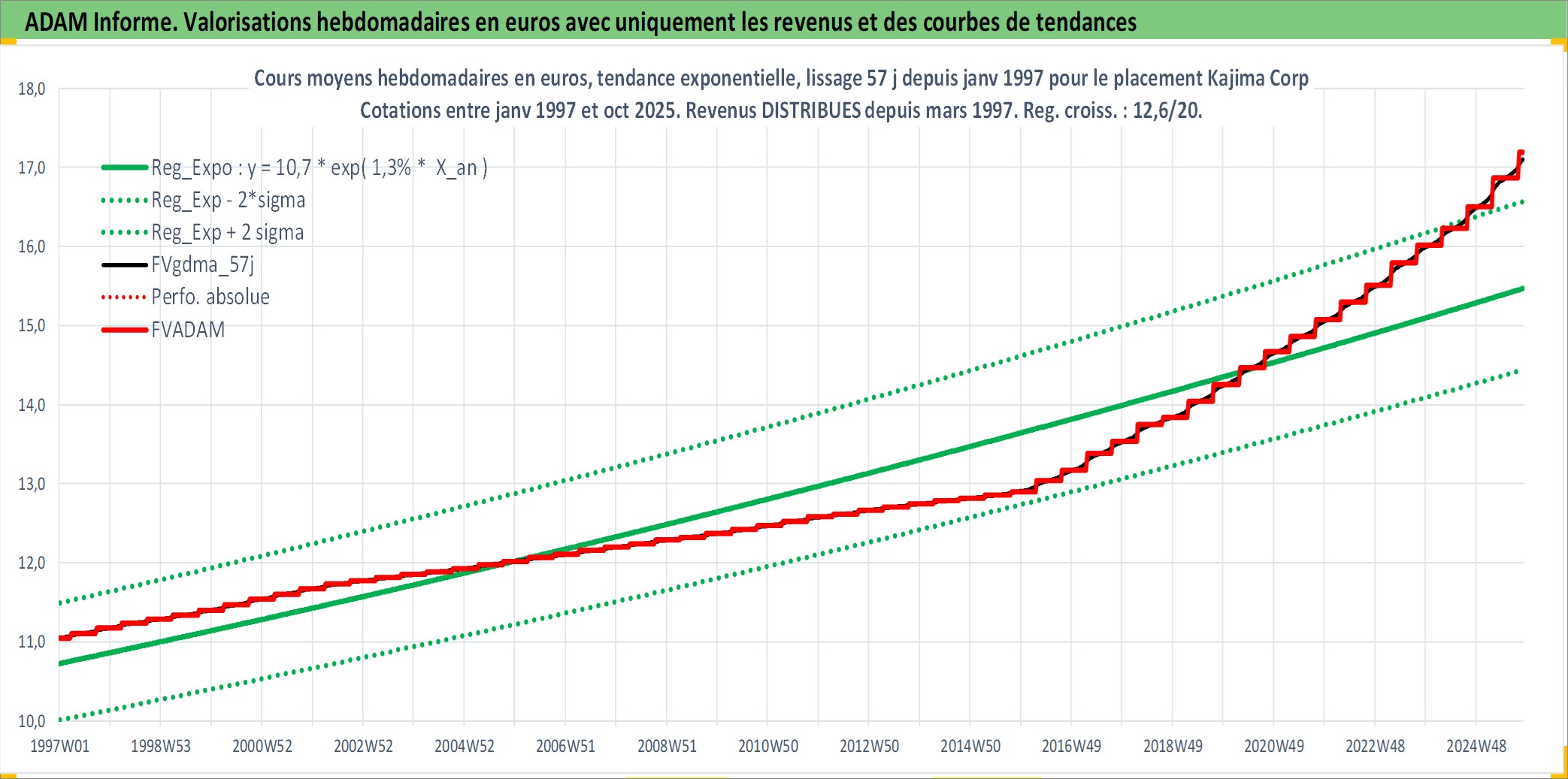 Site dédié aux investisseursPage dédiée sur site financeAnalyse des valorisations hebdomadaires de l'action Kajima Corp. Cet actif est cote en JPY. Les valorisations sont en contrevaleur EURO et couvrent les semaines 1997W01 a 2025W44. Les revenus de cet actif financier sont pris en compte depuis la semaine 1997W13. La note globale ESG de cet actif est estimee a 4.0 (apres rebasage entre 0 et 20).