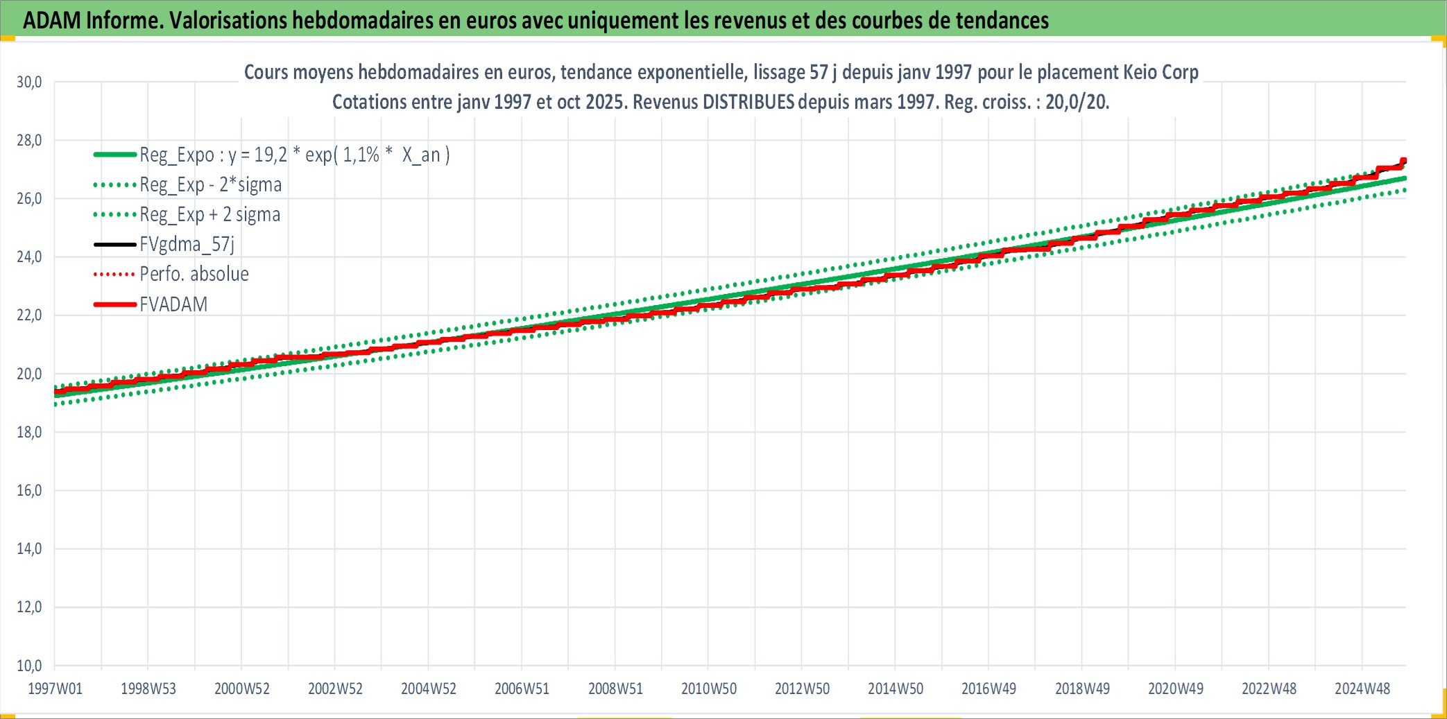 Site dédié aux investisseursPage dédiée sur site financeAnalyse des valorisations hebdomadaires de l'action Keio Corp. Cet actif est cote en JPY. Les valorisations sont en contrevaleur EURO et couvrent les semaines 1997W01 a 2025W44. Les revenus de cet actif financier sont pris en compte depuis la semaine 1997W13. La note ESG de cet actif n'est pas connue.