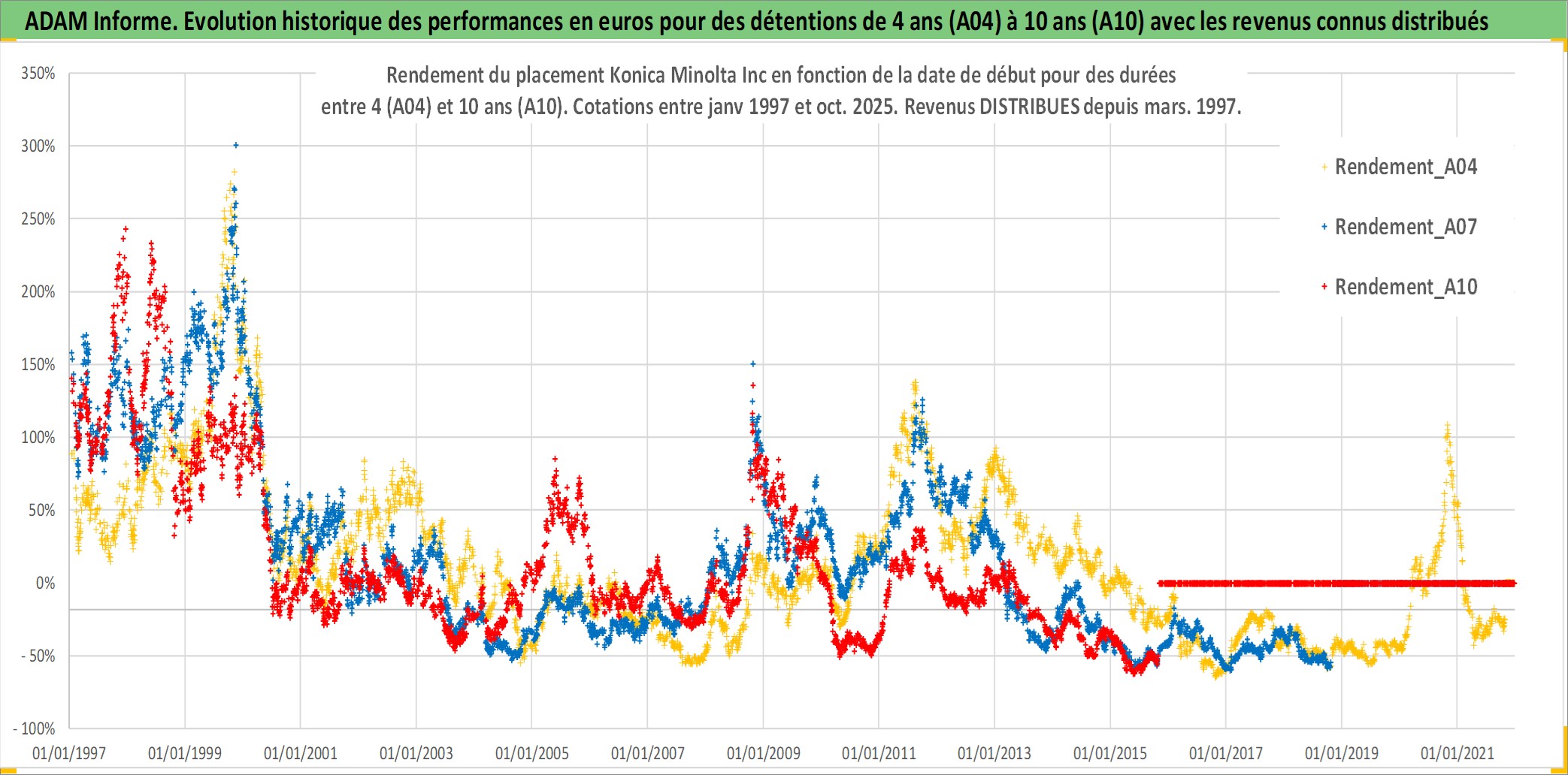 Site dédié aux investisseursPage dédiée sur site financeAnalyse des valorisations hebdomadaires de l'action Konica Minolta Inc. Cet actif est cote en JPY. Les valorisations sont en contrevaleur EURO et couvrent les semaines 1997W01 a 2025W44. Les revenus de cet actif financier sont pris en compte depuis la semaine 1997W13. La note ESG de cet actif n'est pas connue.
