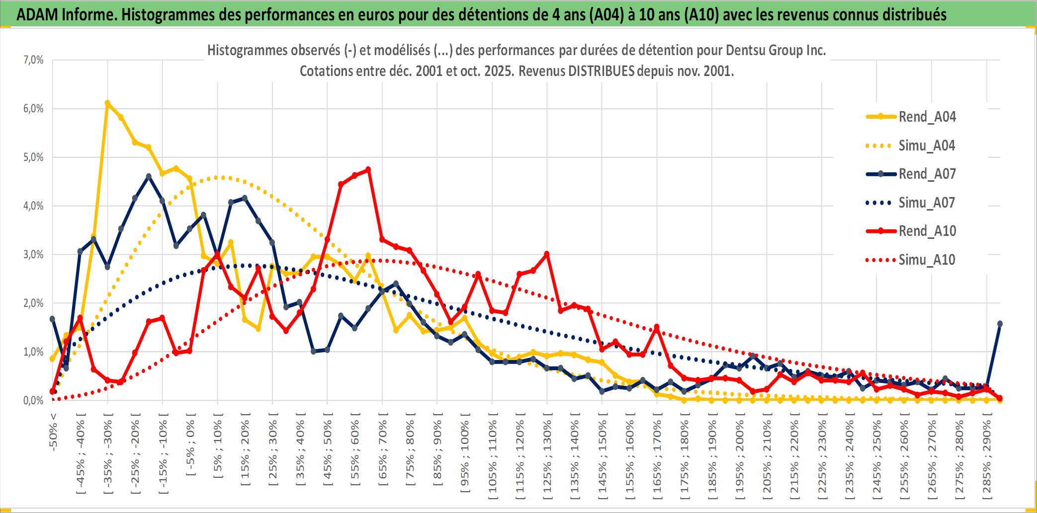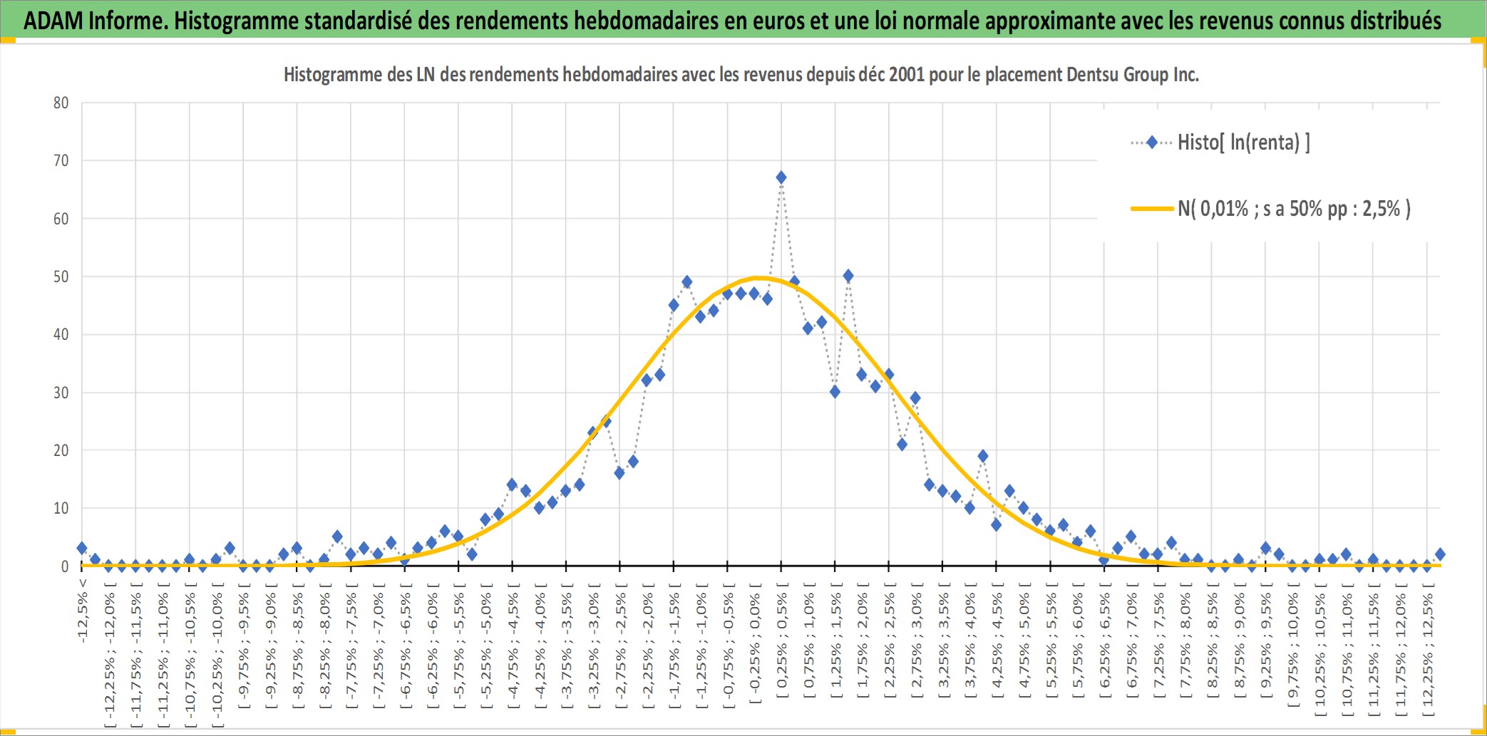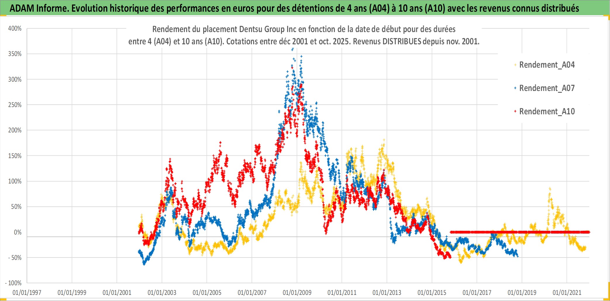Site dédié aux investisseursPage dédiée sur site financeAnalyse des valorisations hebdomadaires de l'action Dentsu Group Inc. Cet actif est cote en JPY. Les valorisations sont en contrevaleur EURO et couvrent les semaines 2001W50 a 2025W44. Les revenus de cet actif financier sont pris en compte depuis la semaine 2001W48. La note globale ESG de cet actif est estimee a 9.0 (apres rebasage entre 0 et 20).