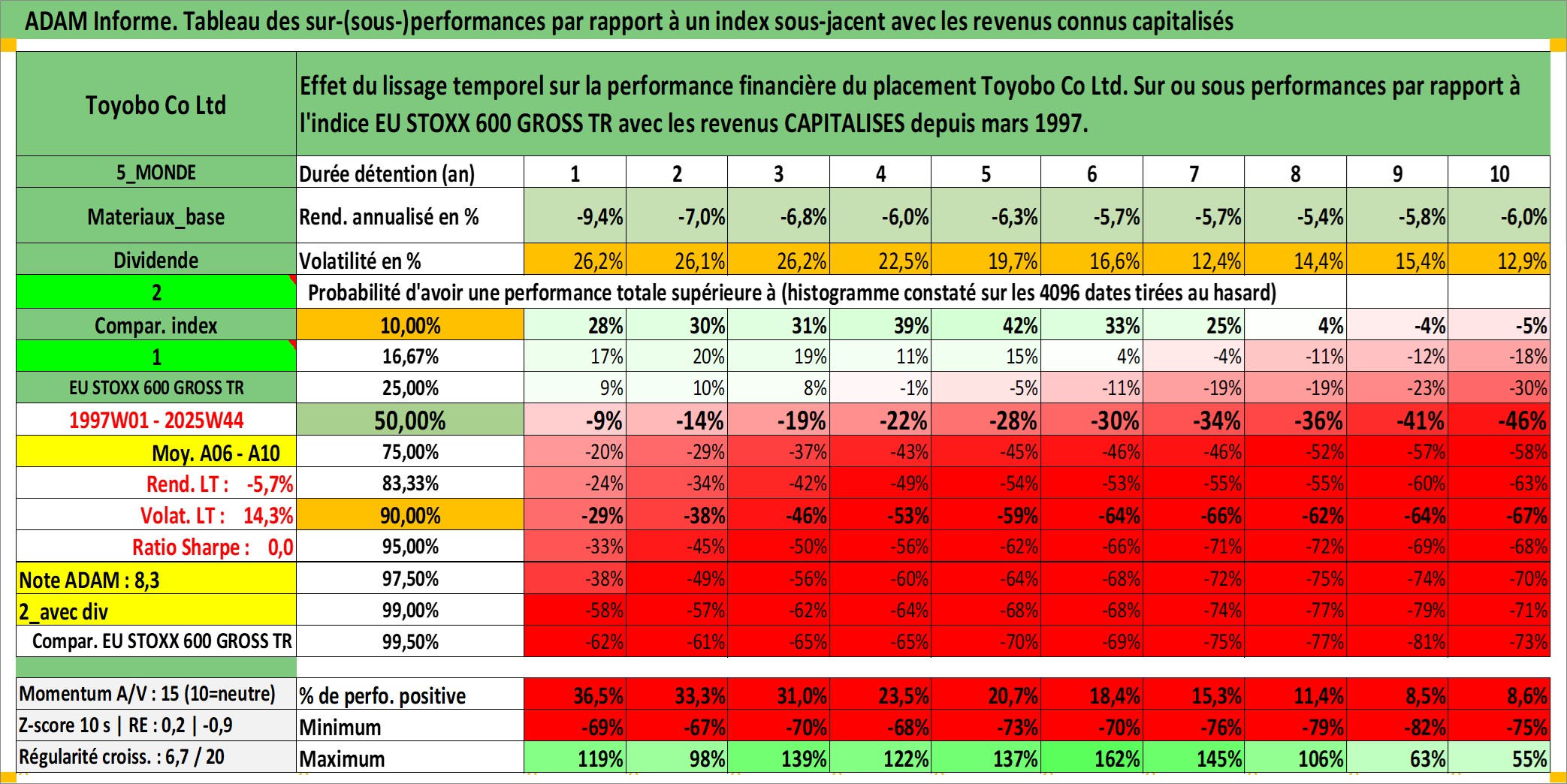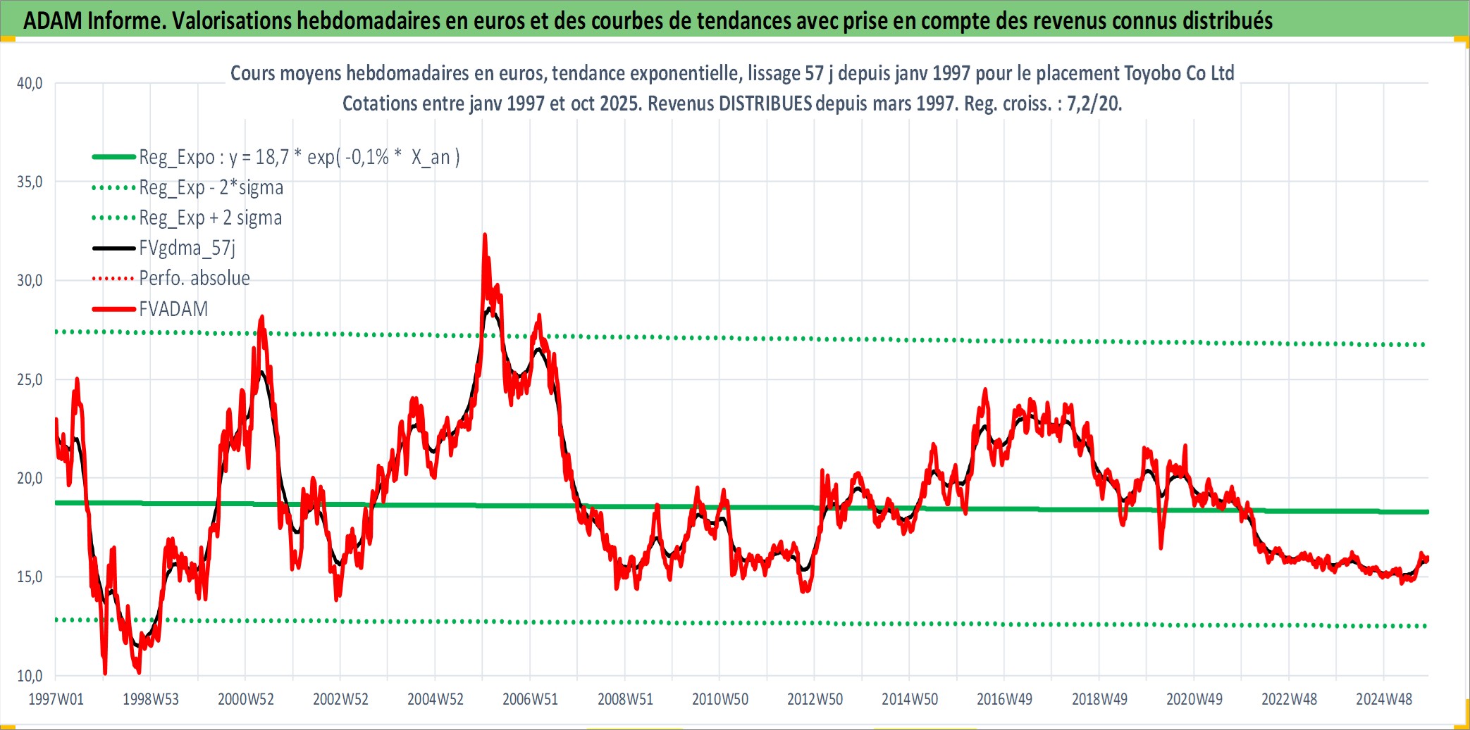 Site dédié aux investisseursPage dédiée sur site financeAnalyse des valorisations hebdomadaires de l'action Toyobo Co Ltd. Cet actif est cote en JPY. Les valorisations sont en contrevaleur EURO et couvrent les semaines 1997W01 a 2025W44. Les revenus de cet actif financier sont pris en compte depuis la semaine 1997W13. La note ESG de cet actif n'est pas connue.