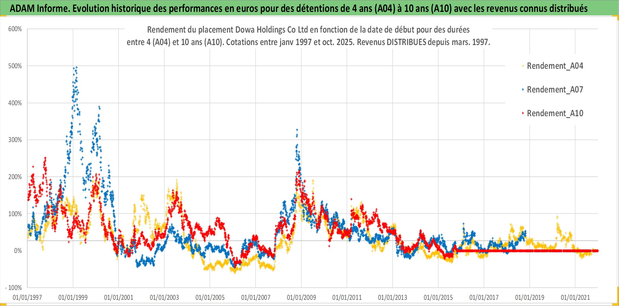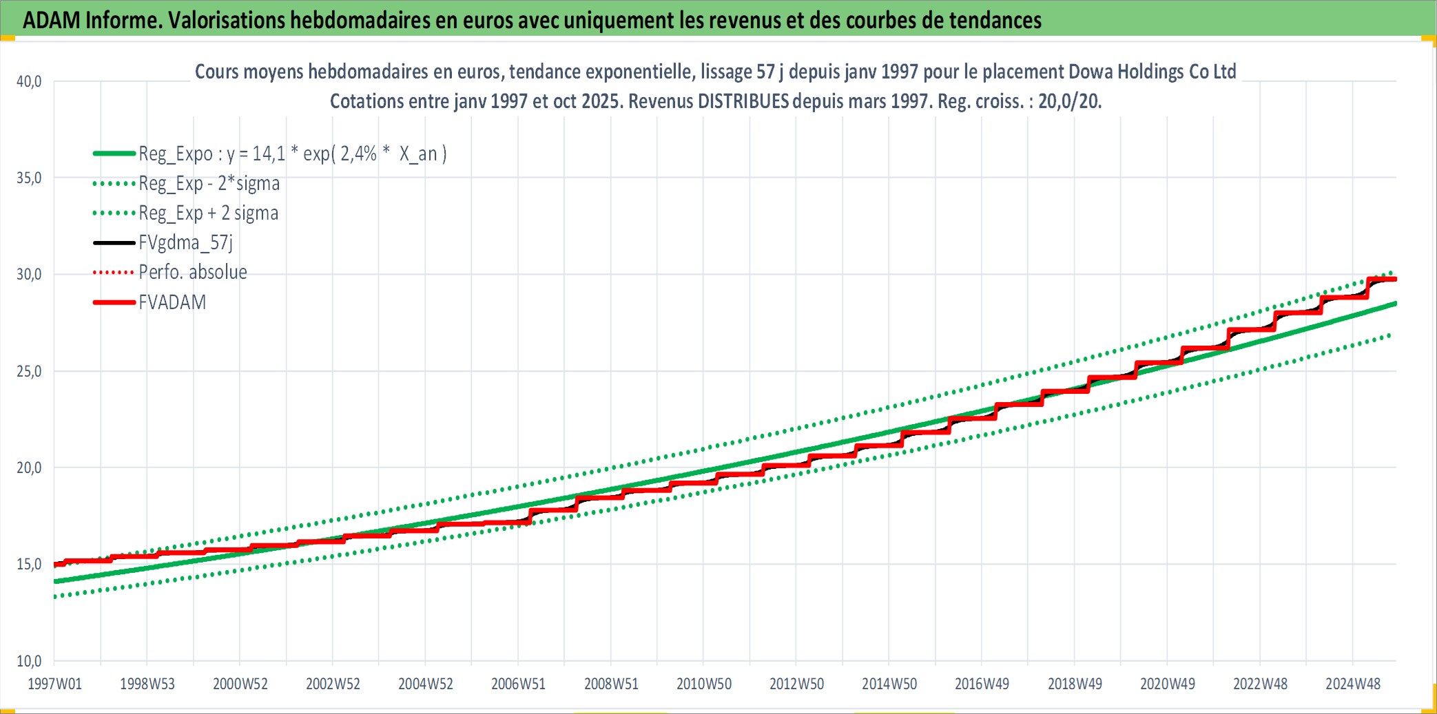 Site dédié aux investisseursPage dédiée sur site financeAnalyse des valorisations hebdomadaires de l'action Dowa Holdings Co Ltd. Cet actif est cote en JPY. Les valorisations sont en contrevaleur EURO et couvrent les semaines 1997W01 a 2025W44. Les revenus de cet actif financier sont pris en compte depuis la semaine 1997W13. La note ESG de cet actif n'est pas connue.