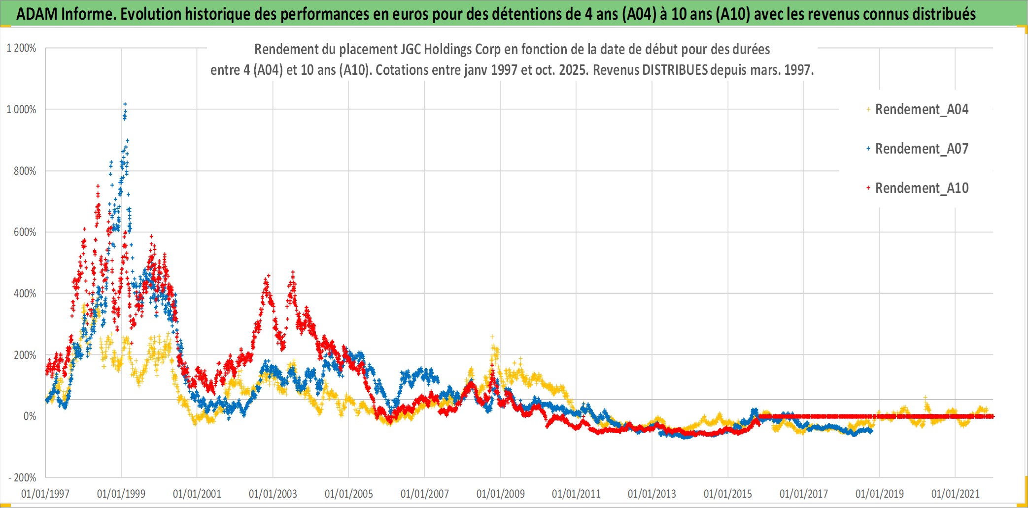 Site dédié aux investisseursPage dédiée sur site financeAnalyse des valorisations hebdomadaires de l'action JGC Holdings Corp. Cet actif est cote en JPY. Les valorisations sont en contrevaleur EURO et couvrent les semaines 1997W01 a 2025W44. Les revenus de cet actif financier sont pris en compte depuis la semaine 1997W13. La note ESG de cet actif n'est pas connue.