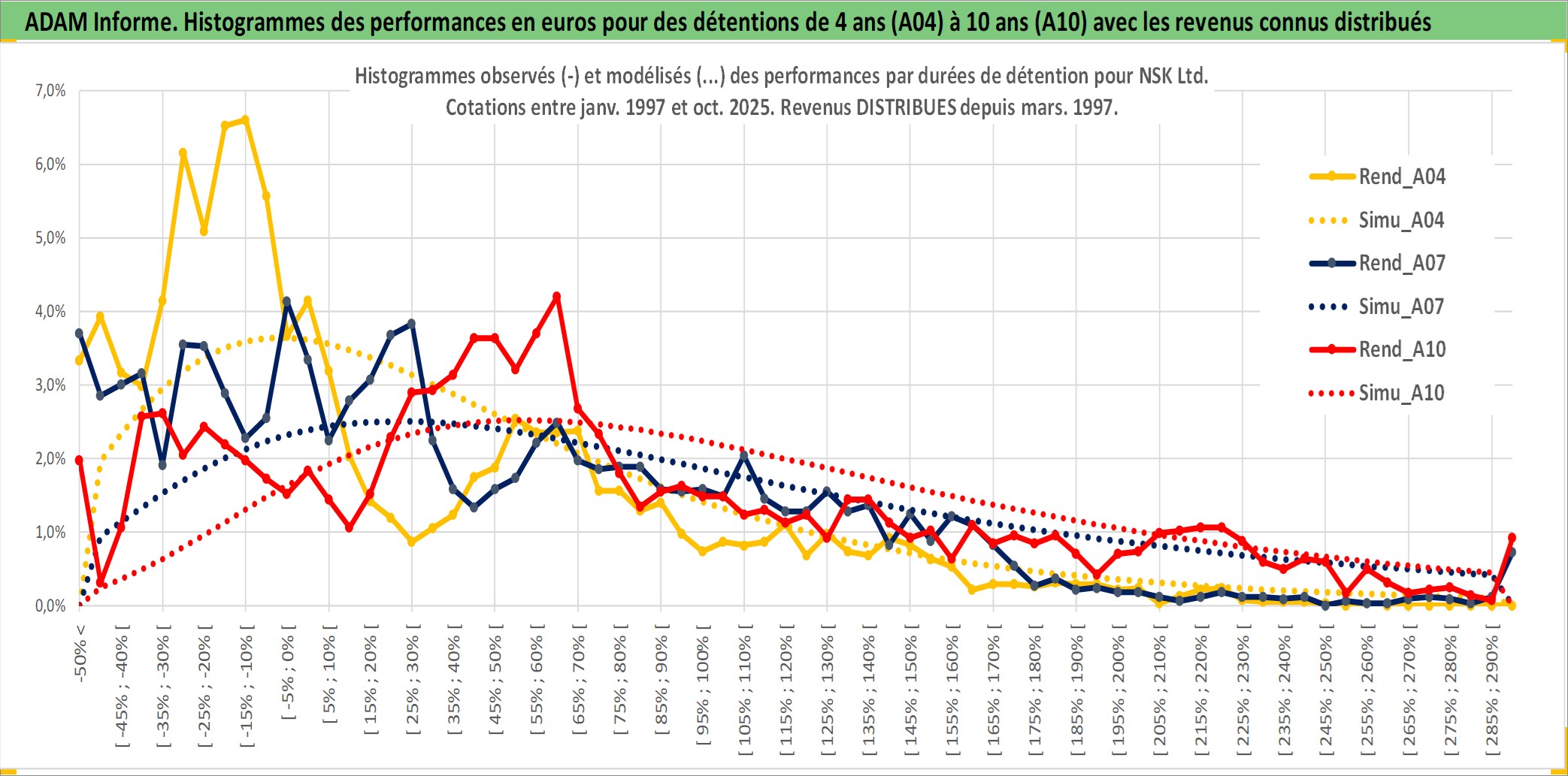 Site dédié aux investisseursPage dédiée sur site financeAnalyse des valorisations hebdomadaires de l'action NSK Ltd. Cet actif est cote en JPY. Les valorisations sont en contrevaleur EURO et couvrent les semaines 1997W01 a 2025W44. Les revenus de cet actif financier sont pris en compte depuis la semaine 1997W13. La note globale ESG de cet actif est estimee a 11.0 (apres rebasage entre 0 et 20).