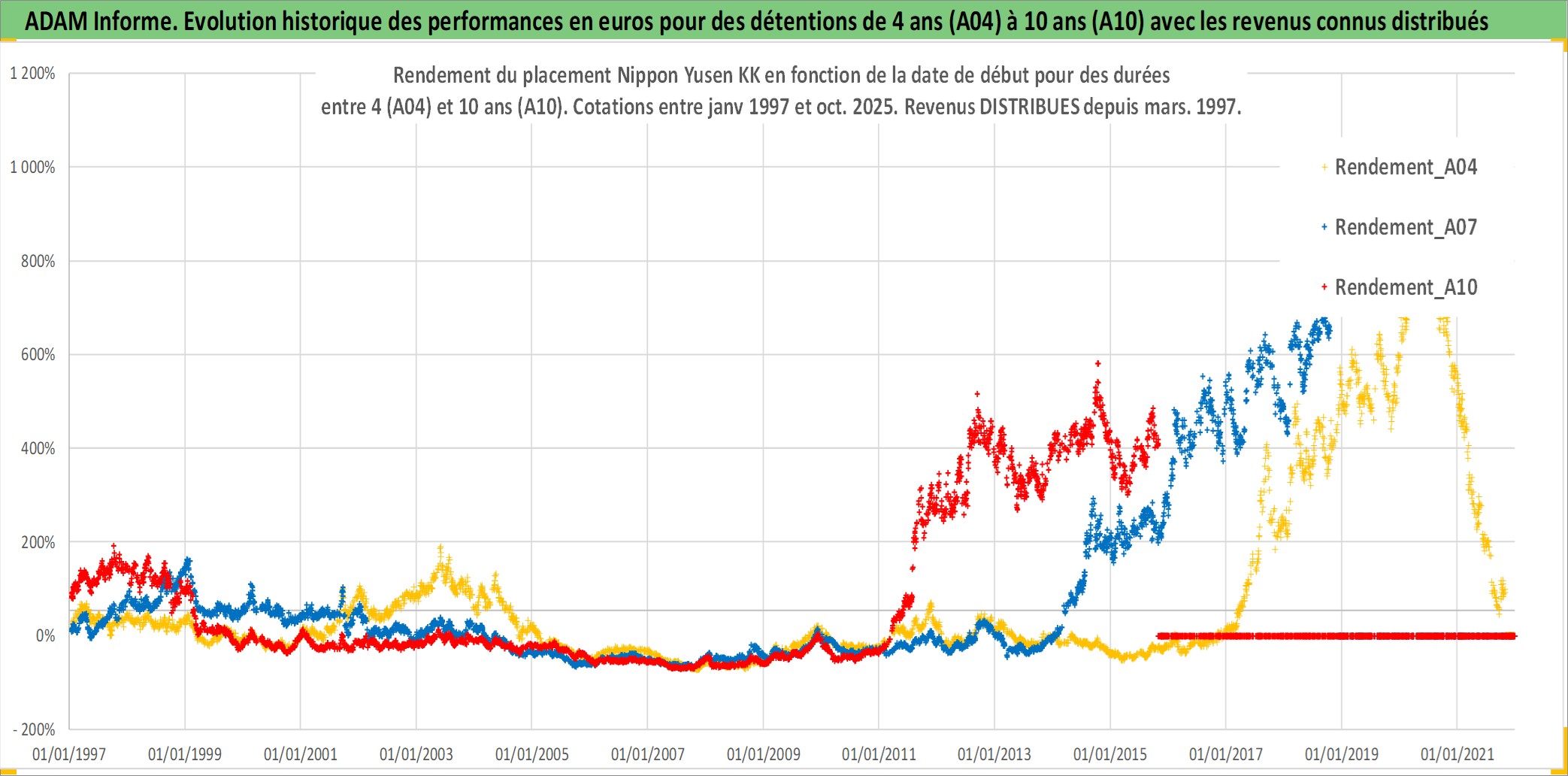 Site dédié aux investisseursPage dédiée sur site financeAnalyse des valorisations hebdomadaires de l'action Nippon Yusen KK. Cet actif est cote en JPY. Les valorisations sont en contrevaleur EURO et couvrent les semaines 1997W01 a 2025W44. Les revenus de cet actif financier sont pris en compte depuis la semaine 1997W13. La note ESG de cet actif n'est pas connue.