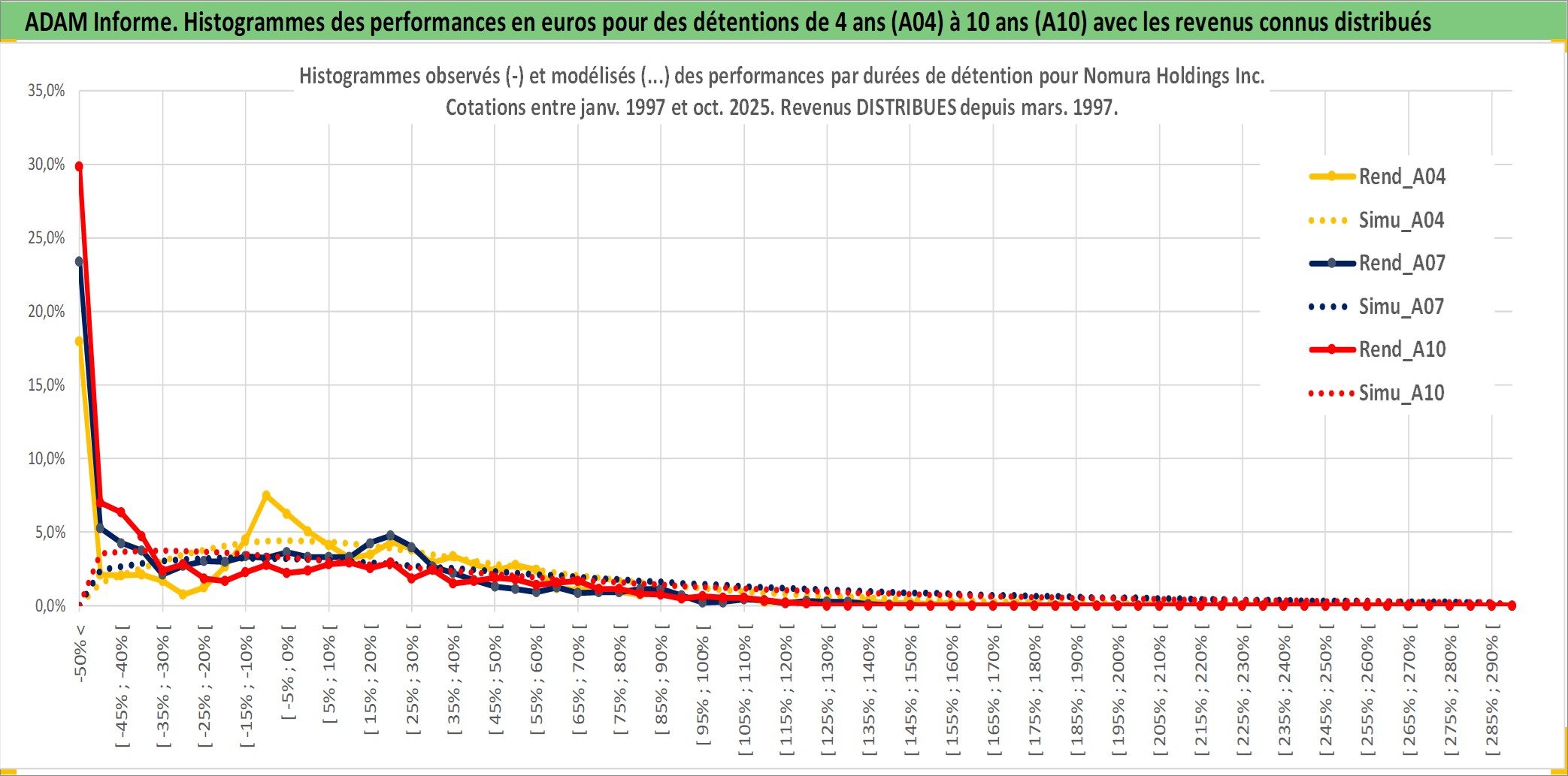 Site dédié aux investisseursPage dédiée sur site financeAnalyse des valorisations hebdomadaires de l'action Nomura Holdings Inc. Cet actif est cote en JPY. Les valorisations sont en contrevaleur EURO et couvrent les semaines 1997W01 a 2025W44. Les revenus de cet actif financier sont pris en compte depuis la semaine 1997W13. La note globale ESG de cet actif est estimee a 10.0 (apres rebasage entre 0 et 20).