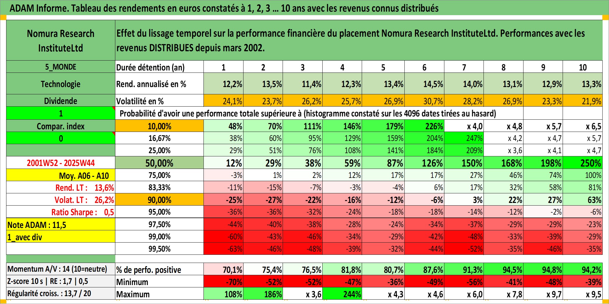 Site dédié aux investisseursPage dédiée sur site financeAnalyse des valorisations hebdomadaires de l'action Nomura Research InstituteLtd. Cet actif est cote en JPY. Les valorisations sont en contrevaleur EURO et couvrent les semaines 2001W52 a 2025W44. Les revenus de cet actif financier sont pris en compte depuis la semaine 2002W13. La note globale ESG de cet actif est estimee a 13.0 (apres rebasage entre 0 et 20).