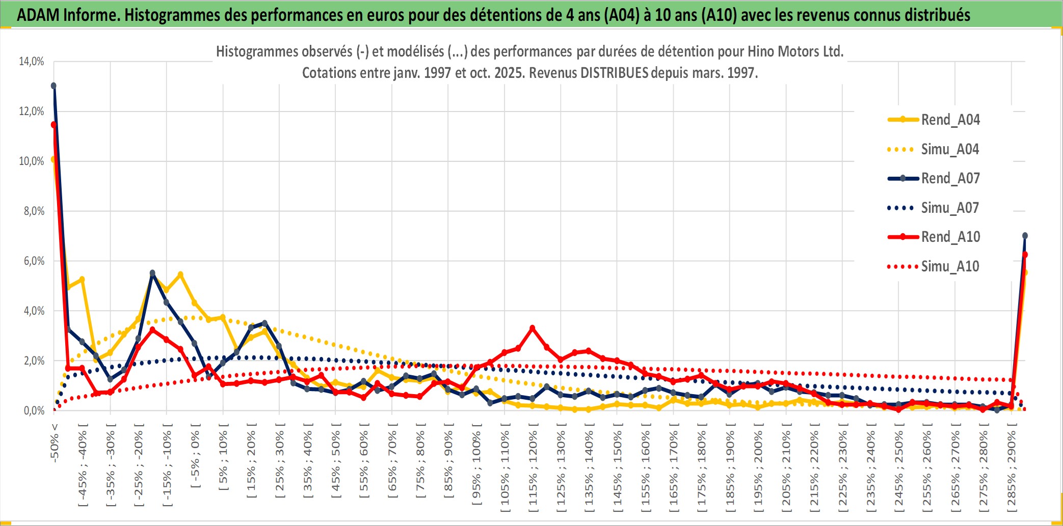 Site dédié aux investisseursPage dédiée sur site financeAnalyse des valorisations hebdomadaires de l'action Hino Motors Ltd. Cet actif est cote en JPY. Les valorisations sont en contrevaleur EURO et couvrent les semaines 1997W01 a 2025W44. Les revenus de cet actif financier sont pris en compte depuis la semaine 1997W13. La note globale ESG de cet actif est estimee a 4.0 (apres rebasage entre 0 et 20).