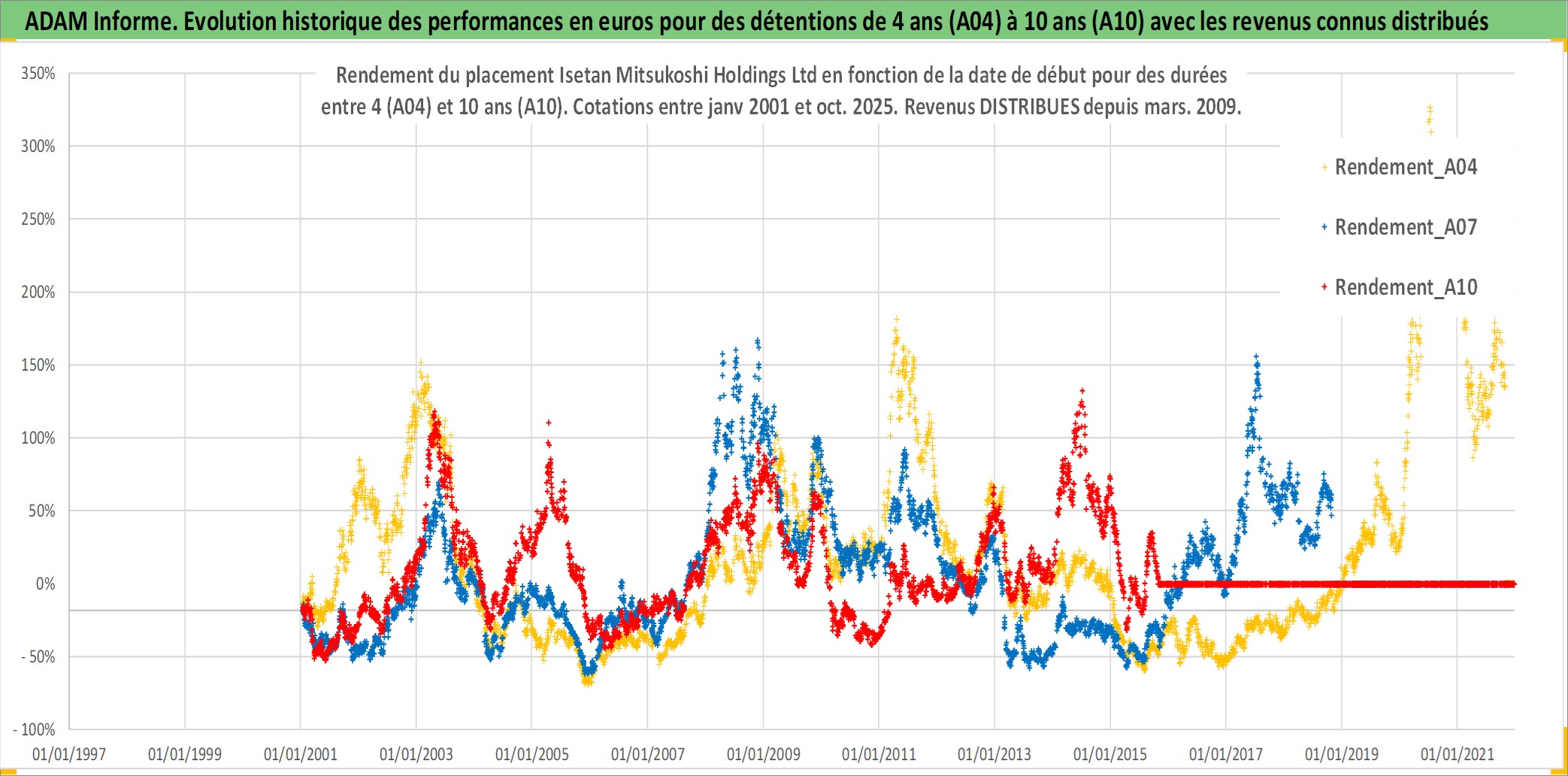 Site dédié aux investisseursPage dédiée sur site financeAnalyse des valorisations hebdomadaires de l'action Isetan Mitsukoshi Holdings Ltd. Cet actif est cote en JPY. Les valorisations sont en contrevaleur EURO et couvrent les semaines 2001W01 a 2025W44. Les revenus de cet actif financier sont pris en compte depuis la semaine 2009W13. La note ESG de cet actif n'est pas connue.