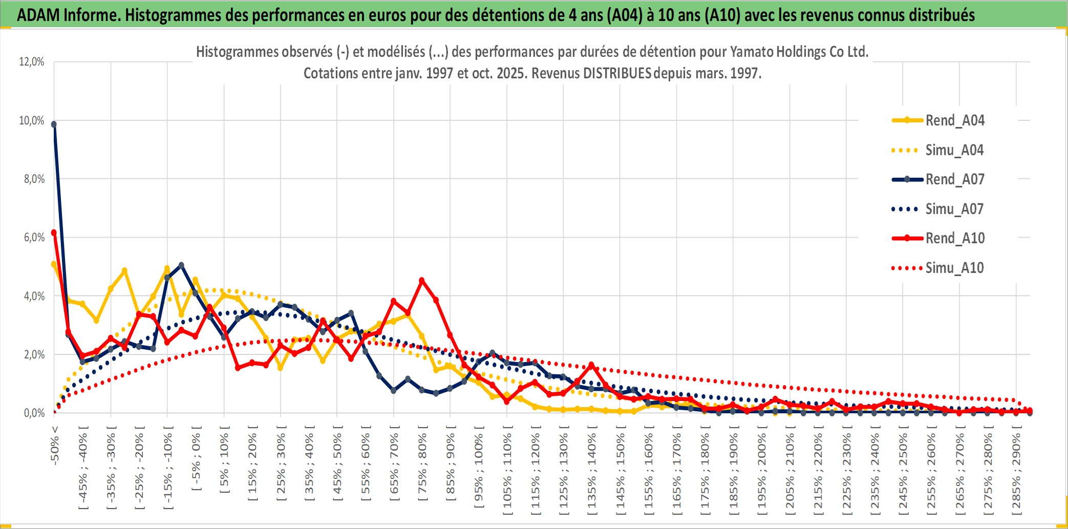 Site dédié aux investisseursPage dédiée sur site financeAnalyse des valorisations hebdomadaires de l'action Yamato Holdings Co Ltd. Cet actif est cote en JPY. Les valorisations sont en contrevaleur EURO et couvrent les semaines 1997W01 a 2025W44. Les revenus de cet actif financier sont pris en compte depuis la semaine 1997W13. La note globale ESG de cet actif est estimee a 9.0 (apres rebasage entre 0 et 20).