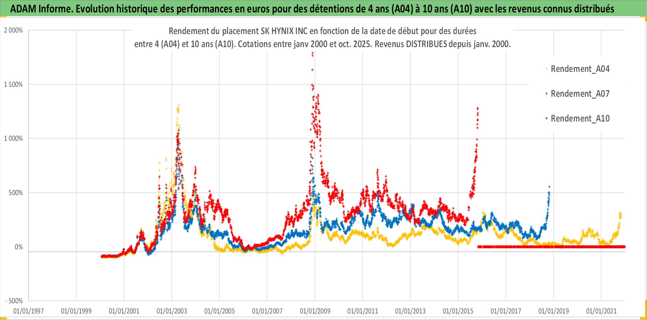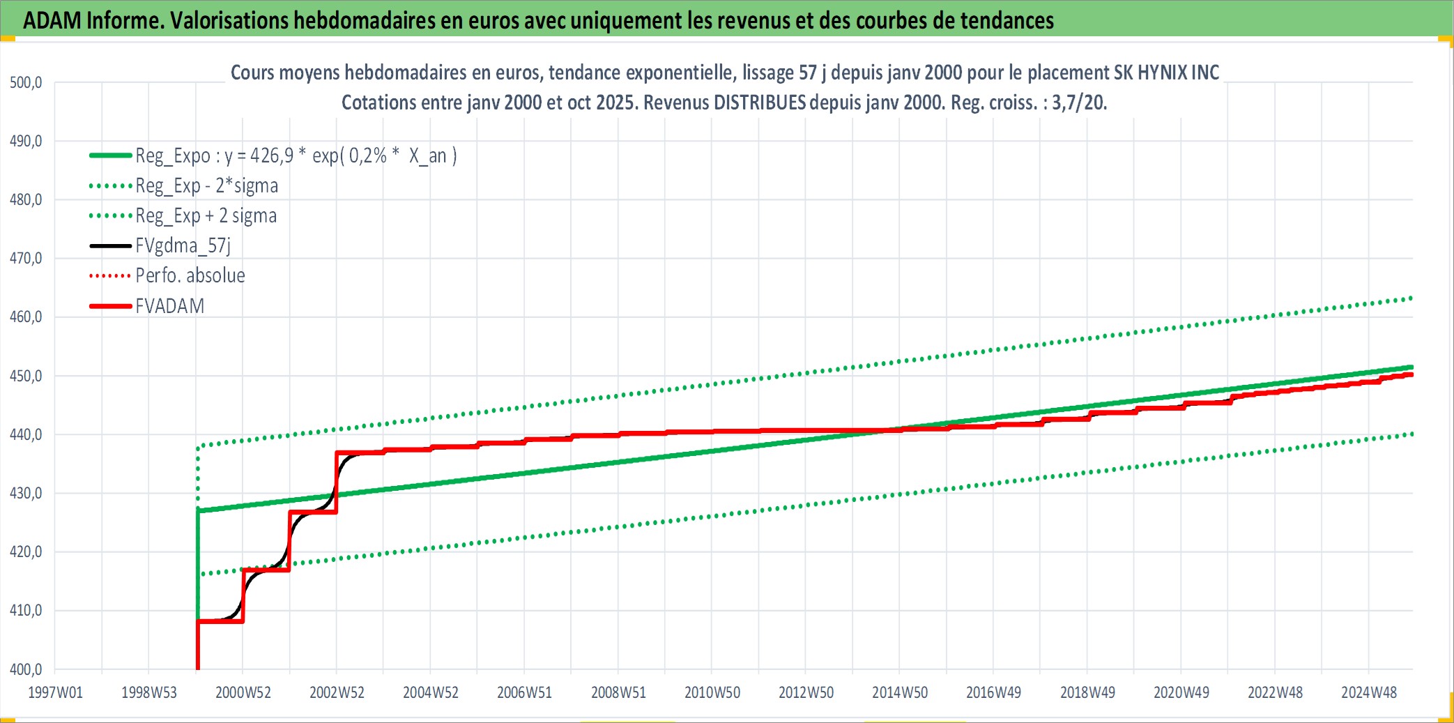 Site dédié aux investisseursPage dédiée sur site financeAnalyse des valorisations hebdomadaires de l'action SK HYNIX INC. Cet actif est cote en KRW. Les valorisations sont en contrevaleur EURO et couvrent les semaines 2000W02 a 2025W44. Les revenus de cet actif financier sont pris en compte depuis la semaine 2000W01. La note globale ESG de cet actif est estimee a 11.0 (apres rebasage entre 0 et 20).