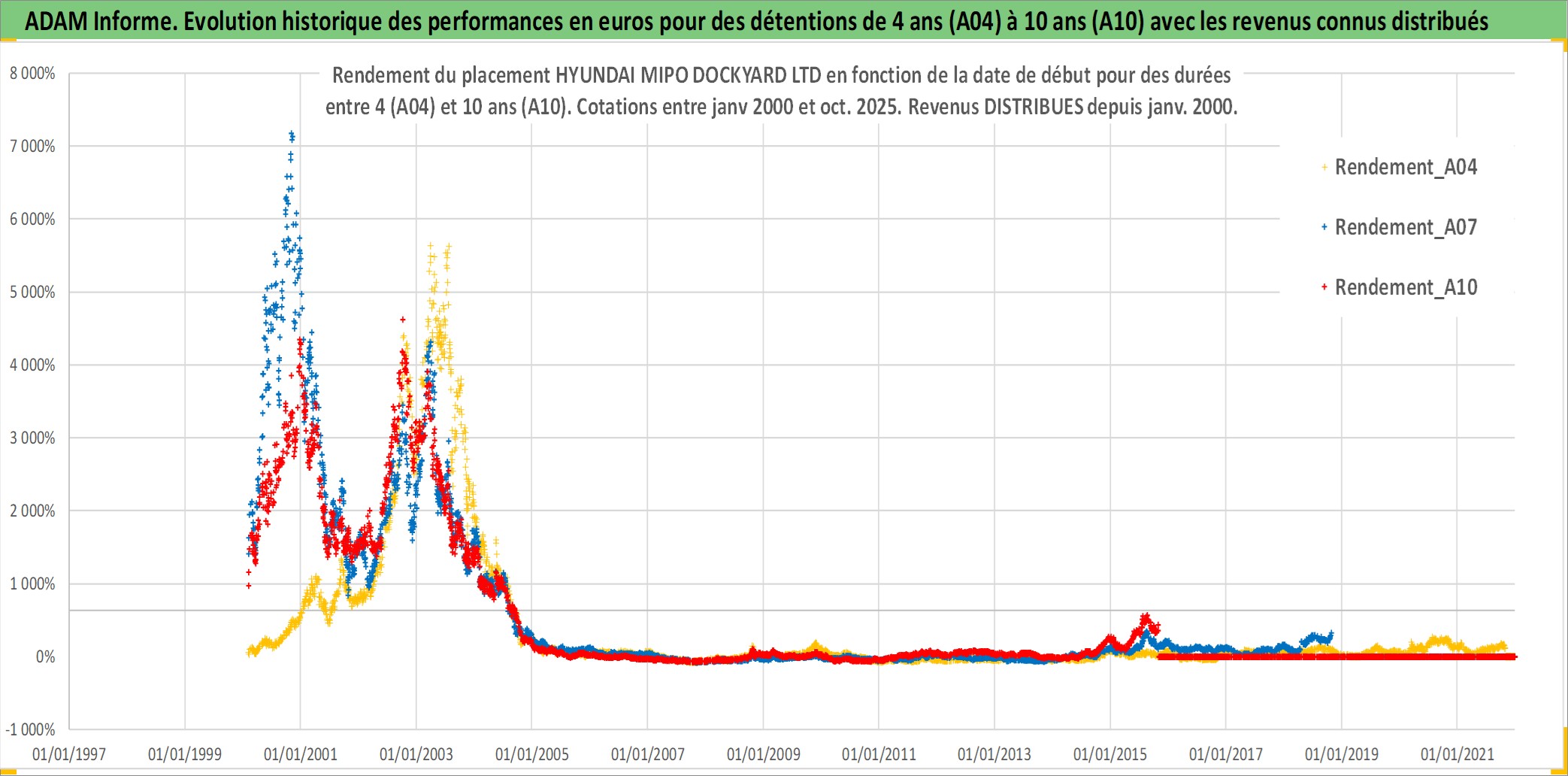 Site dédié aux investisseursPage dédiée sur site financeAnalyse des valorisations hebdomadaires de l'action HYUNDAI MIPO DOCKYARD LTD. Cet actif est cote en KRW. Les valorisations sont en contrevaleur EURO et couvrent les semaines 2000W02 a 2025W44. Les revenus de cet actif financier sont pris en compte depuis la semaine 2000W01. La note ESG de cet actif n'est pas connue.
