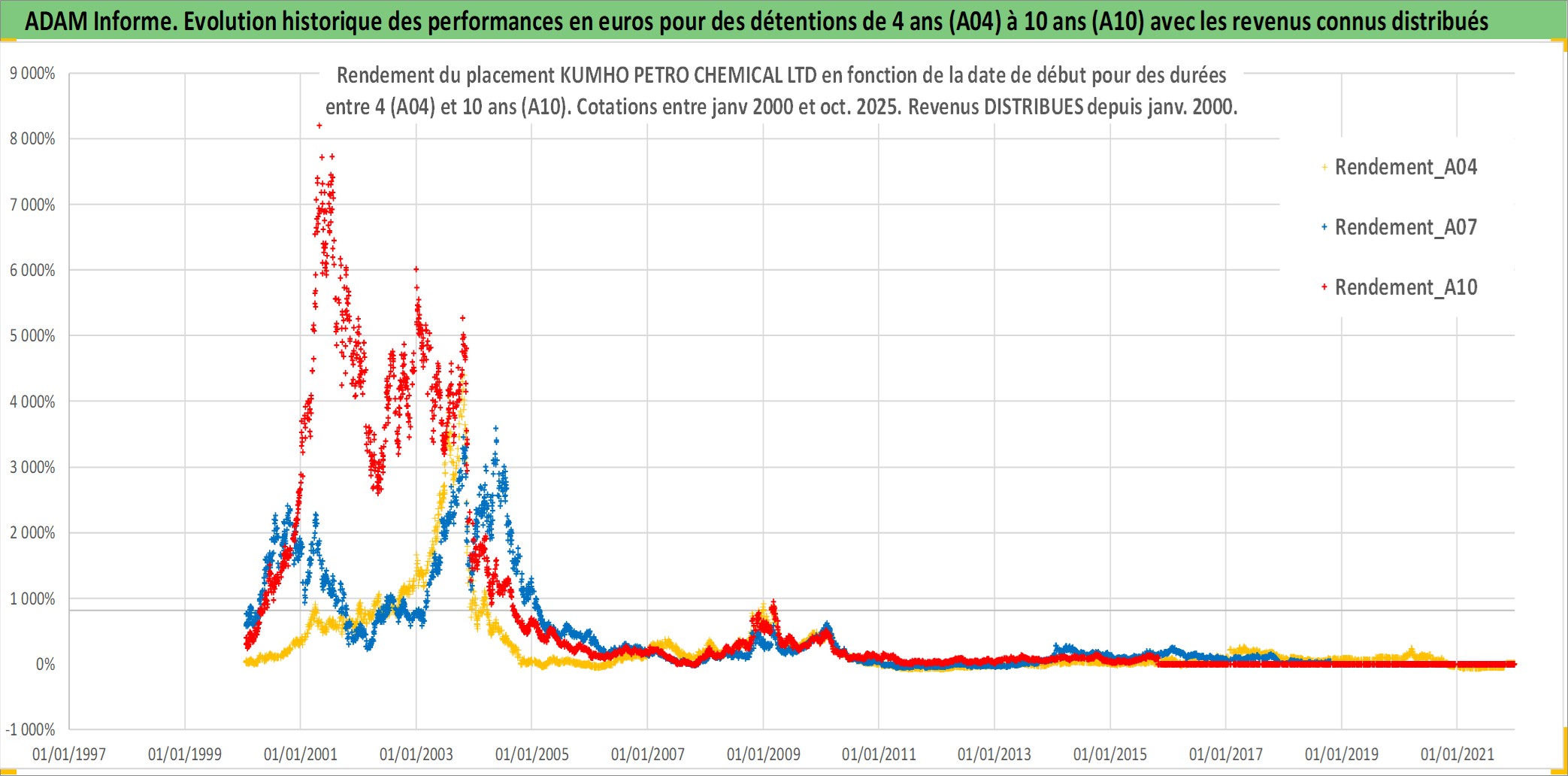 Site dédié aux investisseursPage dédiée sur site financeAnalyse des valorisations hebdomadaires de l'action KUMHO PETRO CHEMICAL LTD. Cet actif est cote en KRW. Les valorisations sont en contrevaleur EURO et couvrent les semaines 2000W02 a 2025W44. Les revenus de cet actif financier sont pris en compte depuis la semaine 2000W01. La note ESG de cet actif n'est pas connue.