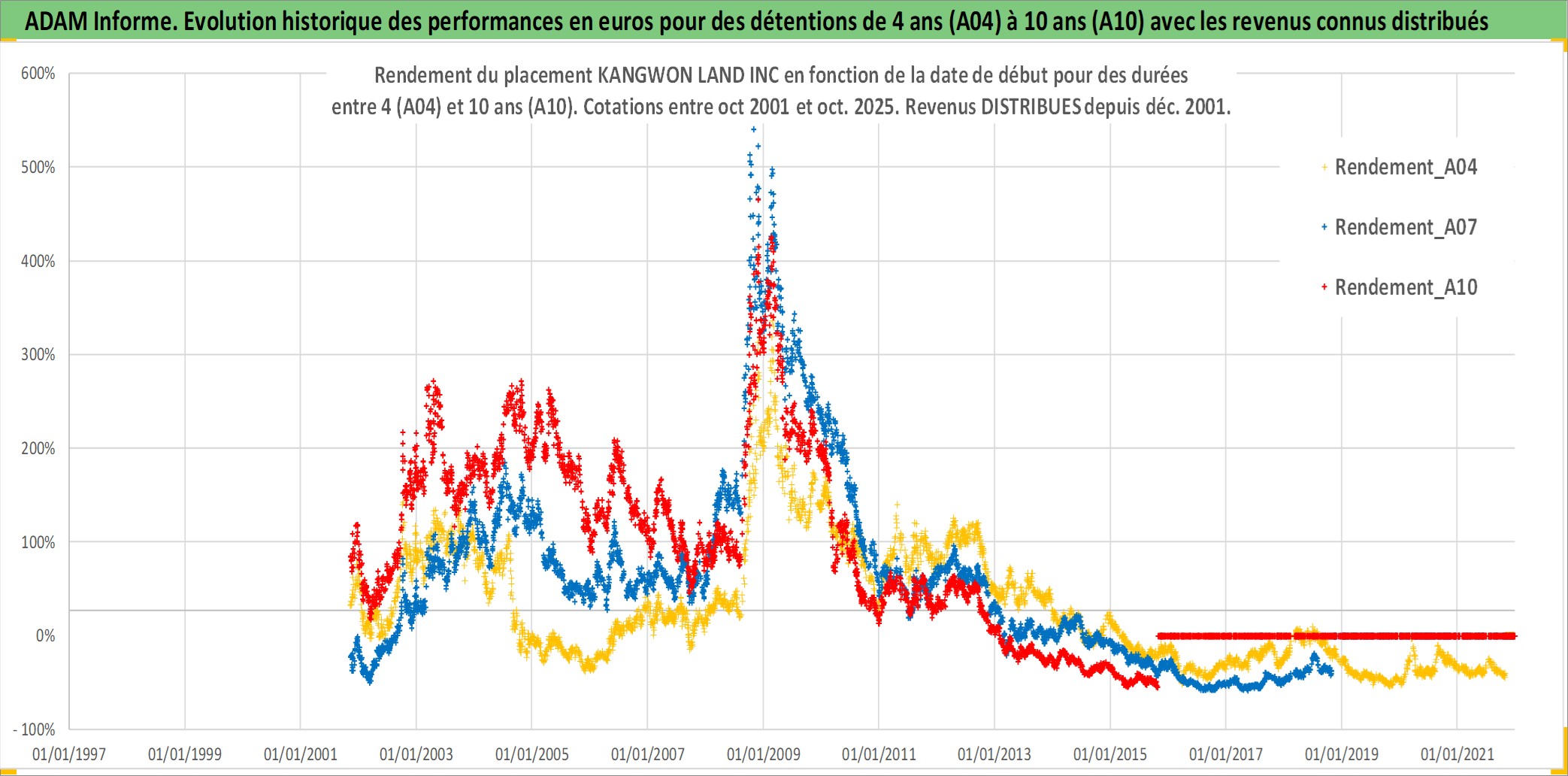 Site dédié aux investisseursPage dédiée sur site financeAnalyse des valorisations hebdomadaires de l'action KANGWON LAND INC. Cet actif est cote en KRW. Les valorisations sont en contrevaleur EURO et couvrent les semaines 2001W44 a 2025W44. Les revenus de cet actif financier sont pris en compte depuis la semaine 2001W52. La note globale ESG de cet actif est estimee a 7.0 (apres rebasage entre 0 et 20).