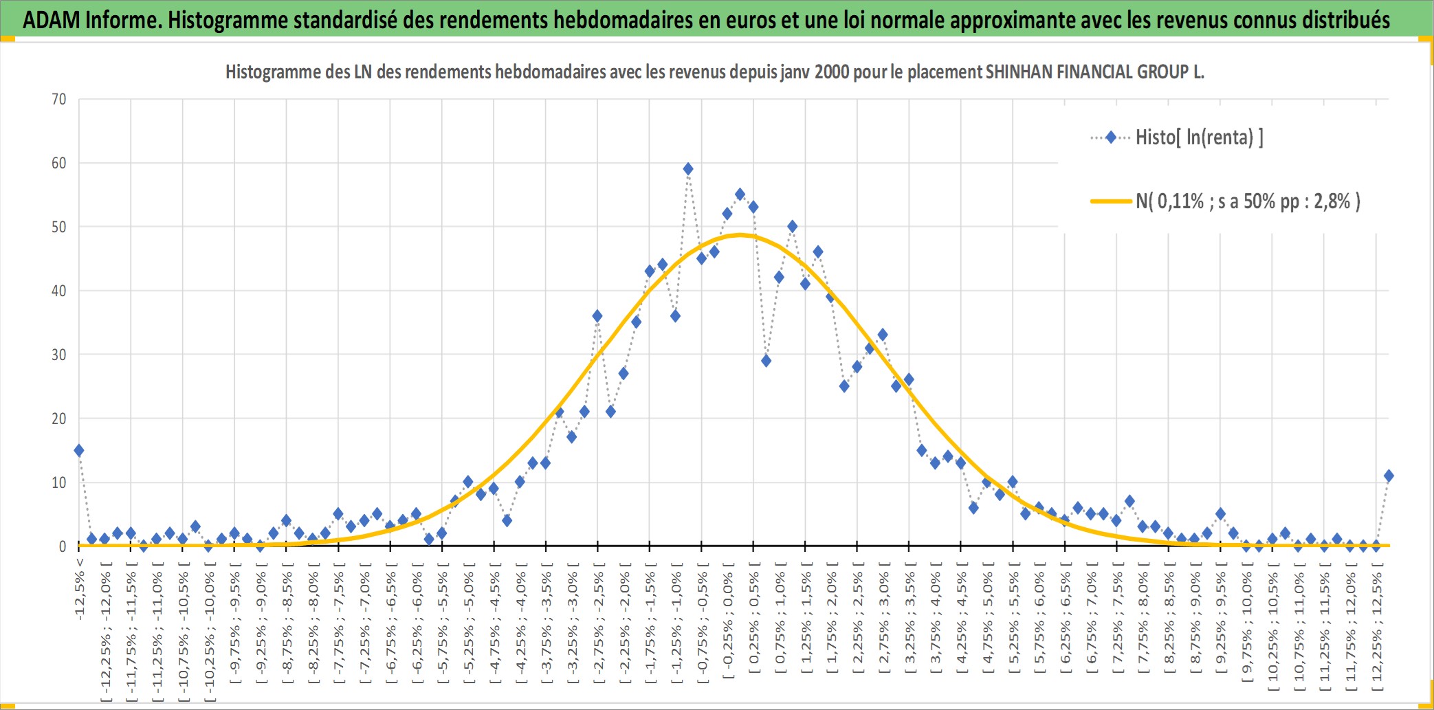 Site dédié aux investisseursPage dédiée sur site financeAnalyse des valorisations hebdomadaires de l'action SHINHAN FINANCIAL GROUP LTD. Cet actif est cote en KRW. Les valorisations sont en contrevaleur EURO et couvrent les semaines 2000W02 a 2025W44. Les revenus de cet actif financier sont pris en compte depuis la semaine 2001W52. La note globale ESG de cet actif est estimee a 9.0 (apres rebasage entre 0 et 20).