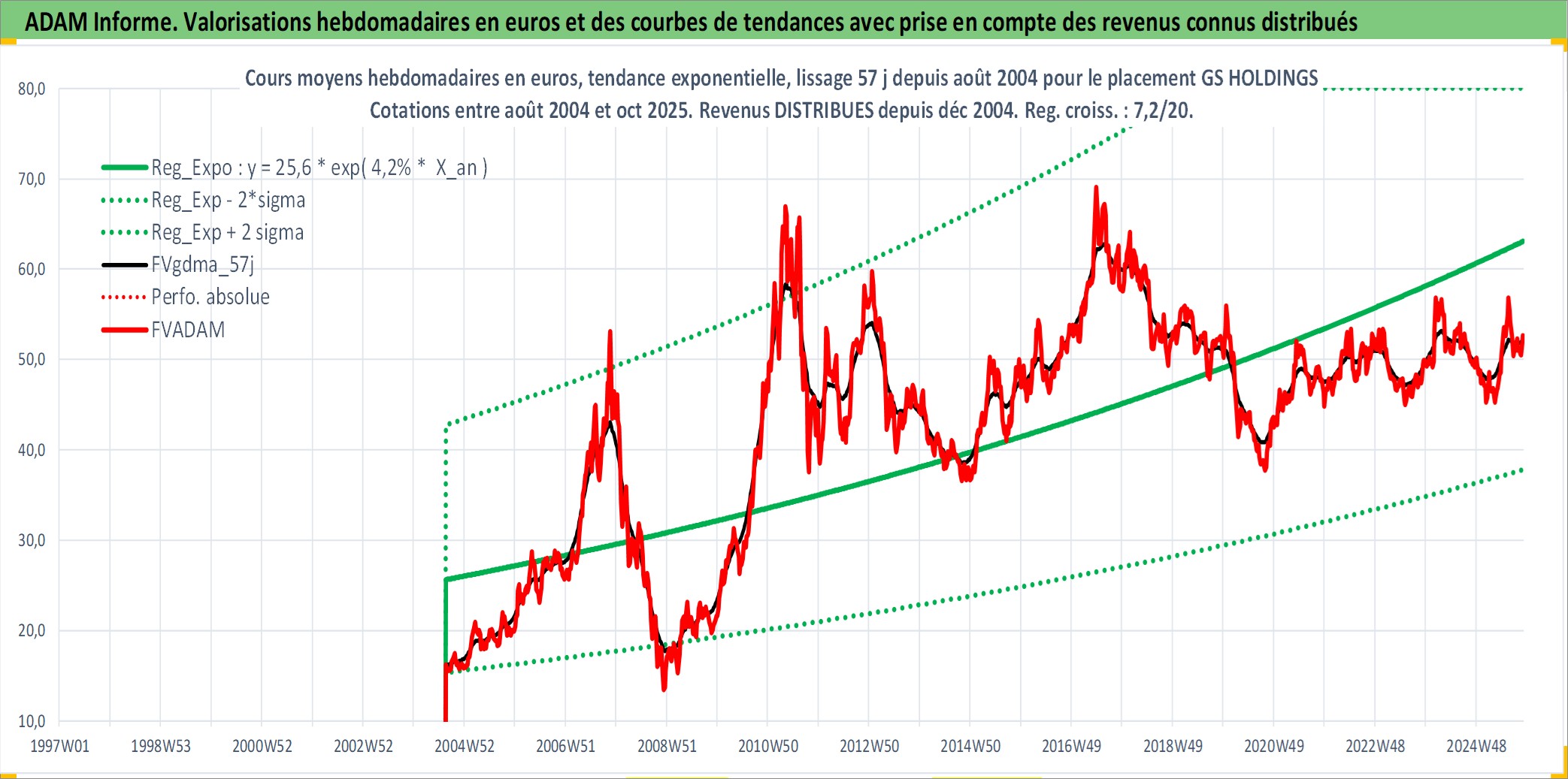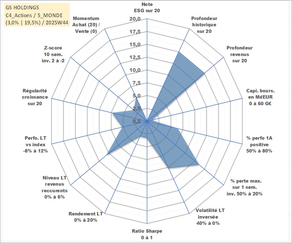 Site dédié aux investisseursPage dédiée sur site financeAnalyse des valorisations hebdomadaires de l'action GS HOLDINGS. Cet actif est cote en KRW. Les valorisations sont en contrevaleur EURO et couvrent les semaines 2004W33 a 2025W44. Les revenus de cet actif financier sont pris en compte depuis la semaine 2004W53. La note ESG de cet actif n'est pas connue.