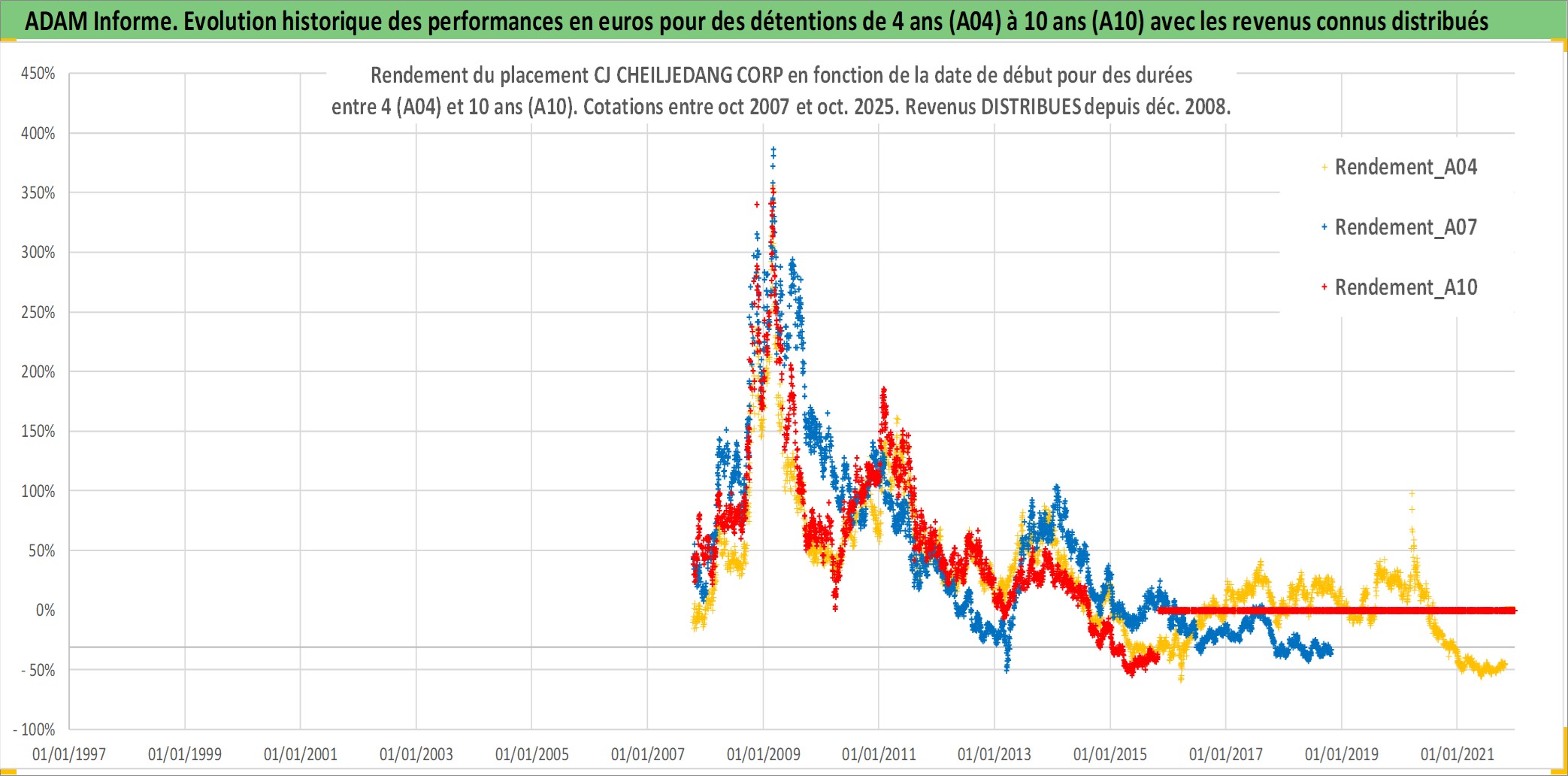 Site dédié aux investisseursPage dédiée sur site financeAnalyse des valorisations hebdomadaires de l'action CJ CHEILJEDANG CORP. Cet actif est cote en KRW. Les valorisations sont en contrevaleur EURO et couvrent les semaines 2007W40 a 2025W44. Les revenus de cet actif financier sont pris en compte depuis la semaine 2009W01. La note ESG de cet actif n'est pas connue.