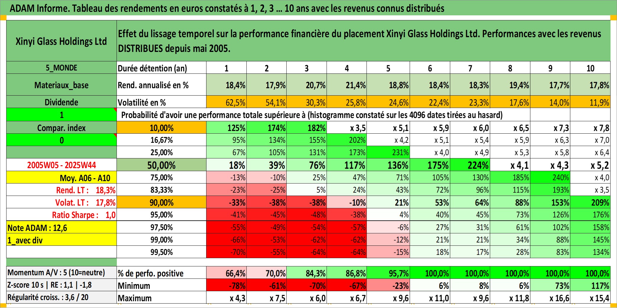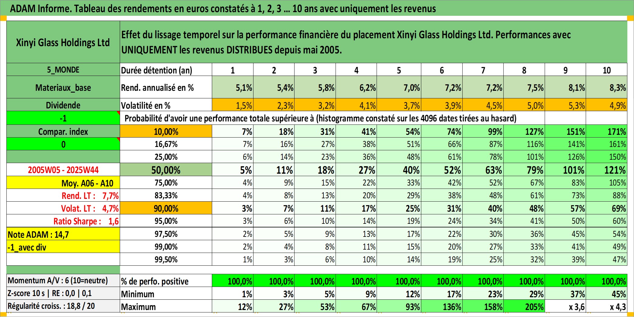 Site dédié aux investisseursPage dédiée sur site financeAnalyse des valorisations hebdomadaires de l'action Xinyi Glass Holdings Ltd. Cet actif est cote en HKD. Les valorisations sont en contrevaleur EURO et couvrent les semaines 2005W05 a 2025W44. Les revenus de cet actif financier sont pris en compte depuis la semaine 2005W19. La note ESG de cet actif n'est pas connue.