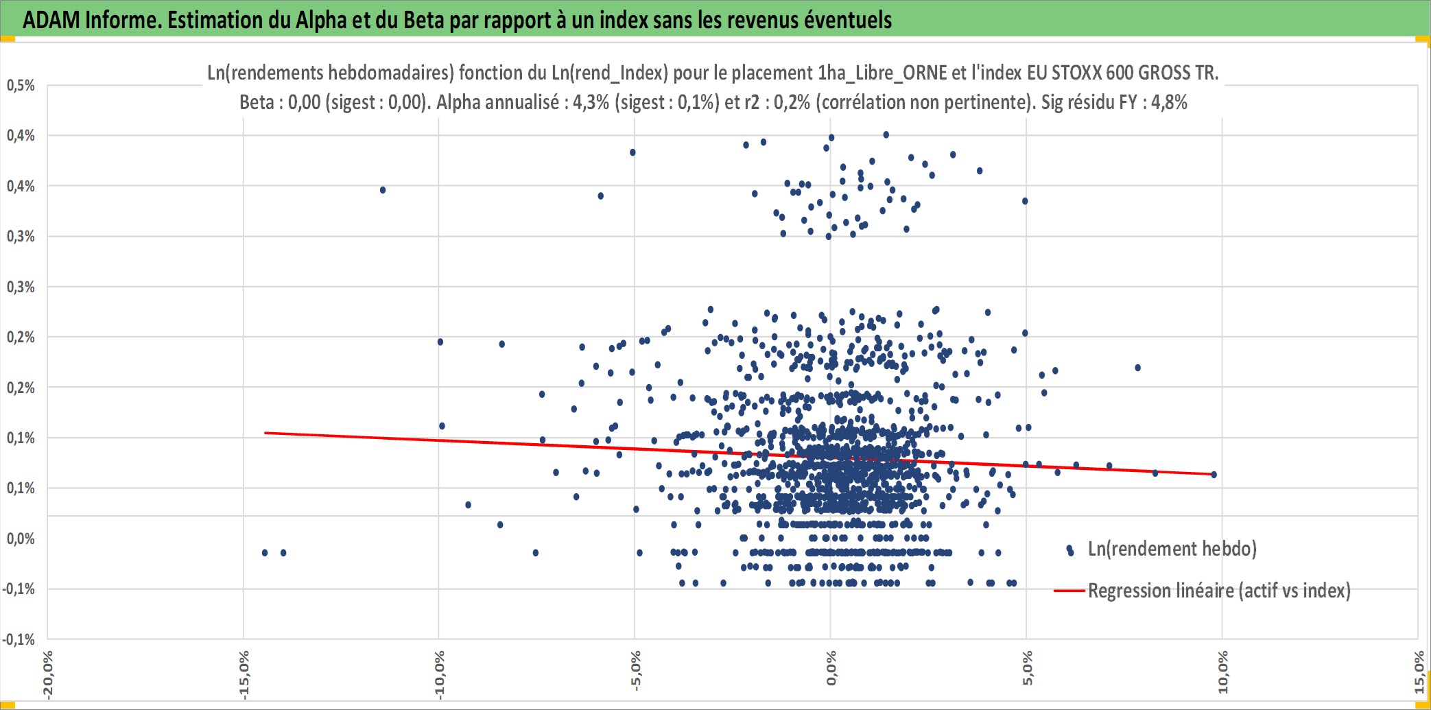 Site dédié aux investisseursPage dédiée sur site financeAnalyse des valorisations hebdomadaires de l'actif 1ha_Libre_ORNE. Cet actif est cote en EUR. Les valorisations couvrent les semaines 1997W01 a 2025W44. Les fermages de ce bien foncier sont pris egaux a 2,5% annuels de la valeur venale du bien.