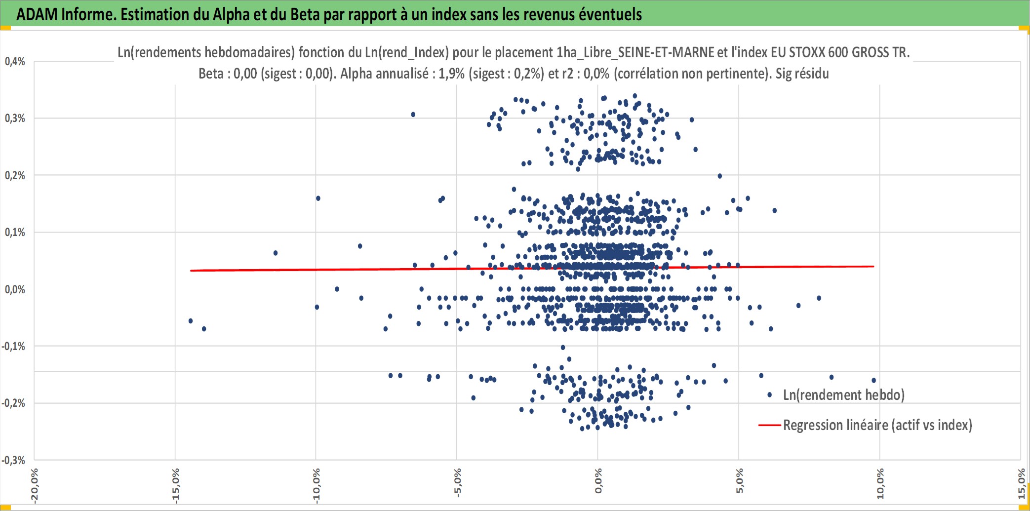 Site dédié aux investisseursPage dédiée sur site financeAnalyse des valorisations hebdomadaires de l'actif 1ha_Libre_SEINE-ET-MARNE. Cet actif est cote en EUR. Les valorisations couvrent les semaines 1997W01 a 2025W44. Les fermages de ce bien foncier sont pris egaux a 2,5% annuels de la valeur venale du bien.