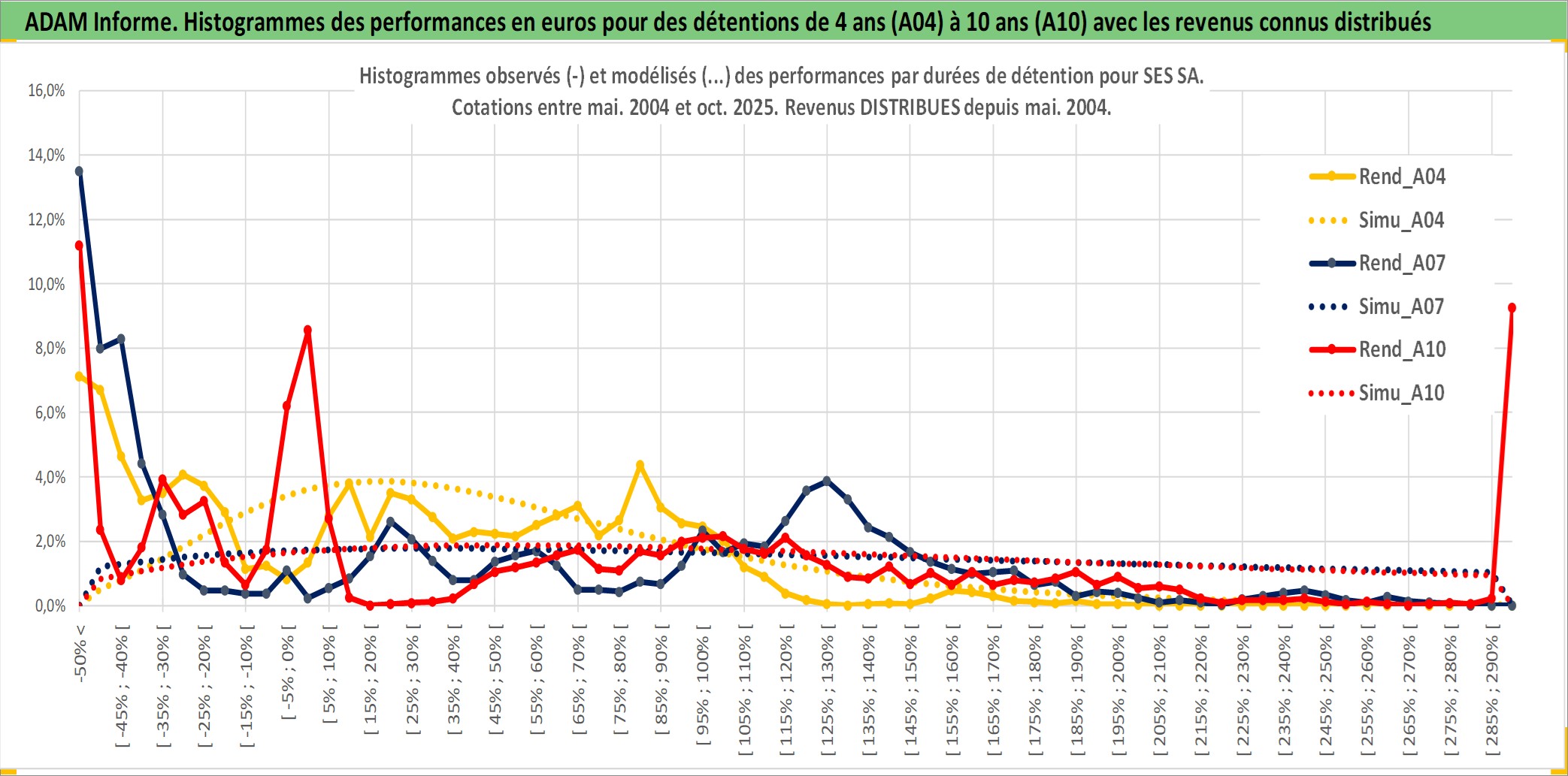 Site dédié aux investisseursPage dédiée sur site financeAnalyse des valorisations hebdomadaires de l'action SES SA. Cet actif est cote en EUR. Les valorisations couvrent les semaines 2004W19 a 2025W44. Les revenus de cet actif financier sont pris en compte depuis la semaine 2004W21. La note globale ESG de cet actif est estimee a 12.0 (apres rebasage entre 0 et 20).