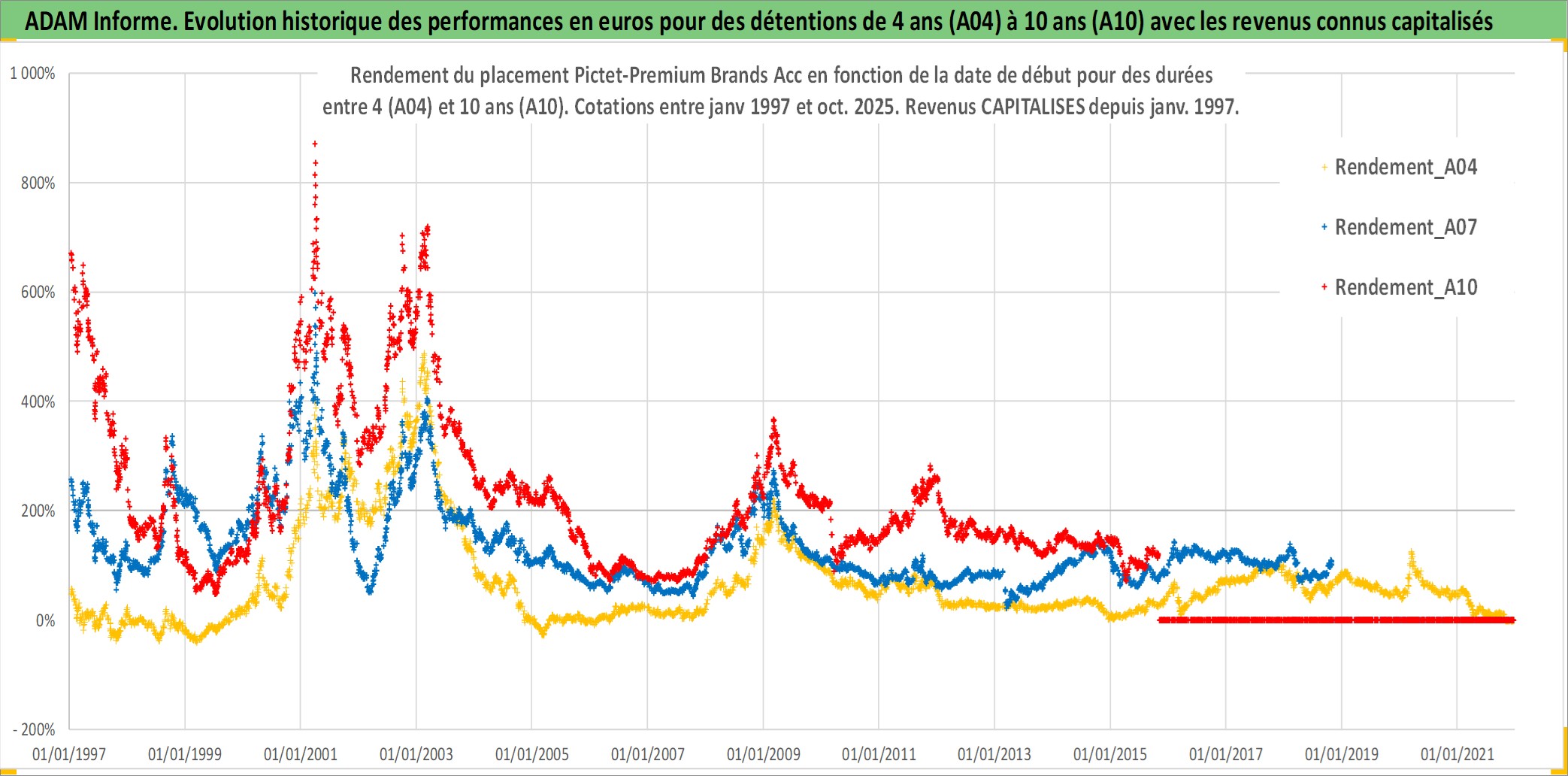 Site dédié aux investisseursPage dédiée sur site financeAnalyse des valorisations hebdomadaires du fonds Pictet-Premium Brands Acc. Cet actif est cote en EUR. Les valorisations couvrent les semaines 1997W01 a 2025W44. Les revenus de cet actif financier sont pris en compte depuis la semaine 1997W01. La note ESG de cet actif n'est pas connue.