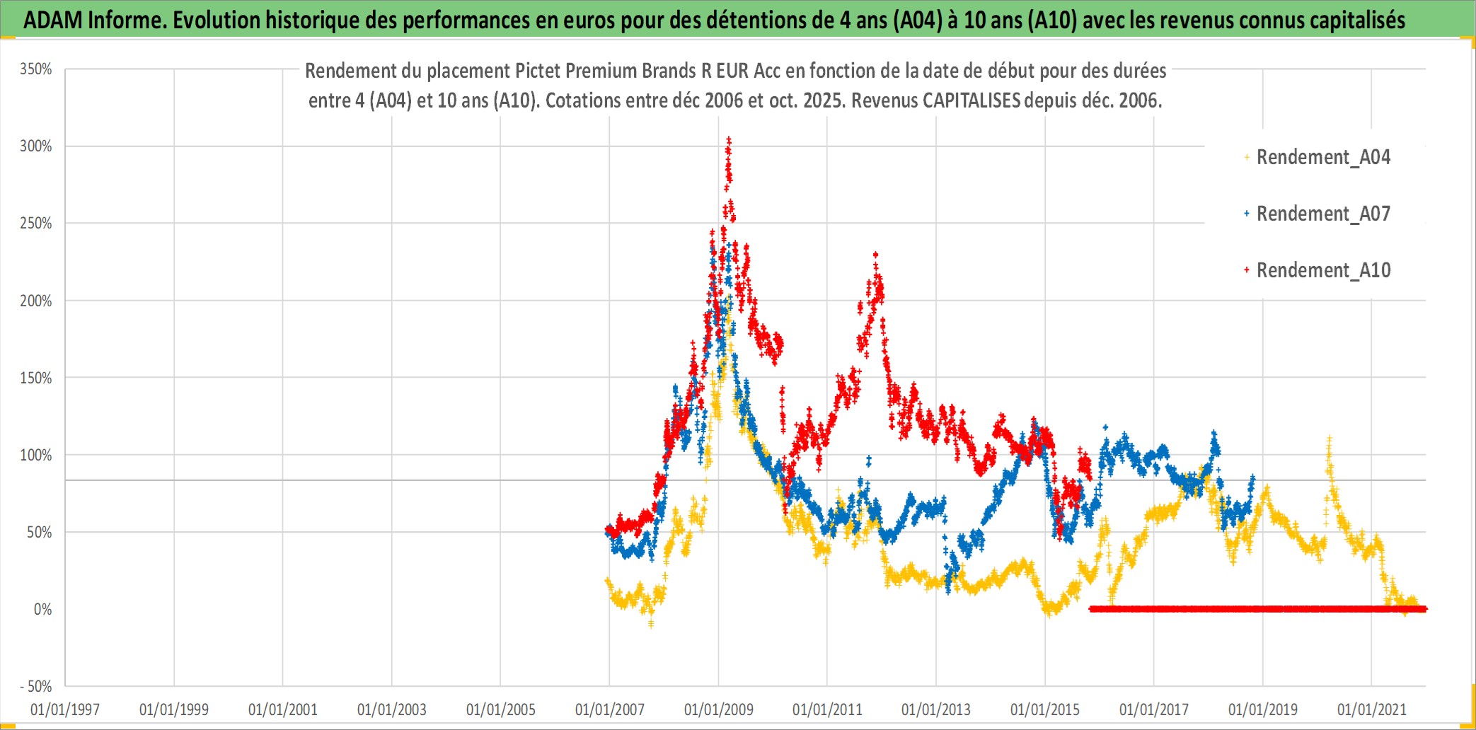 Site dédié aux investisseursPage dédiée sur site financeAnalyse des valorisations hebdomadaires du fonds Pictet Premium Brands R EUR Acc. Cet actif est cote en EUR. Les valorisations couvrent les semaines 2006W49 a 2025W44. Les revenus de cet actif financier sont pris en compte depuis la semaine 2006W49. La note globale ESG de cet actif est estimee a 11.0 (apres rebasage entre 0 et 20).