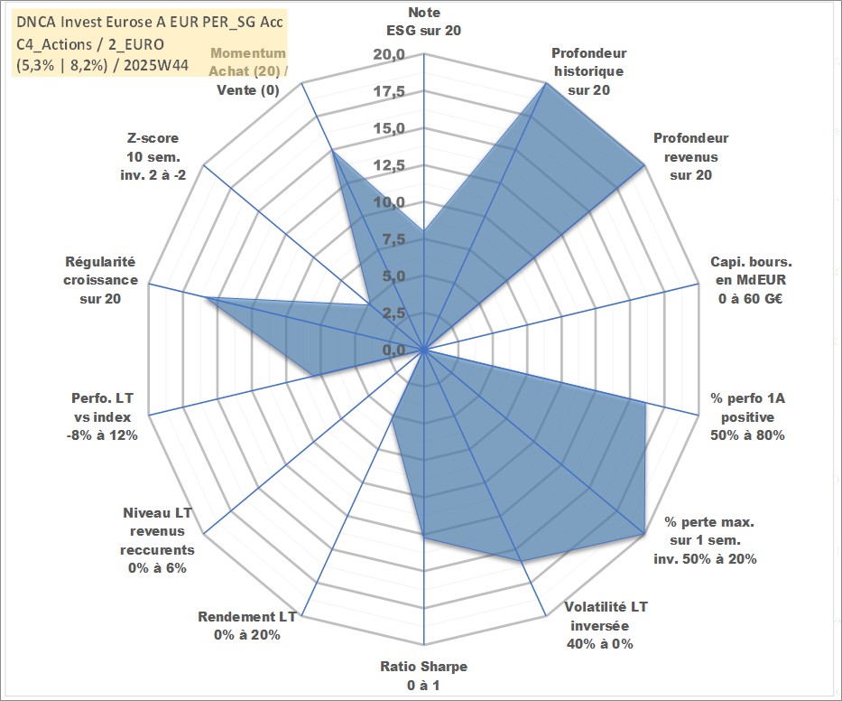 Site dédié aux investisseursPage dédiée sur site financeAnalyse des valorisations hebdomadaires du fonds DNCA Invest Eurose A EUR PER_SG Acc. Cet actif est cote en EUR. Les valorisations couvrent les semaines 1997W01 a 2025W44. Les revenus de cet actif financier sont pris en compte depuis la semaine 1997W01. La note globale ESG de cet actif est estimee a 8.0 (apres rebasage entre 0 et 20).
