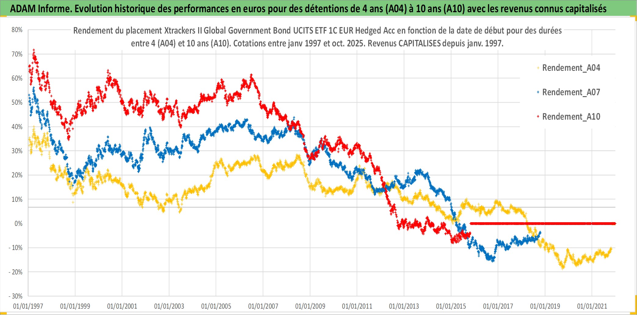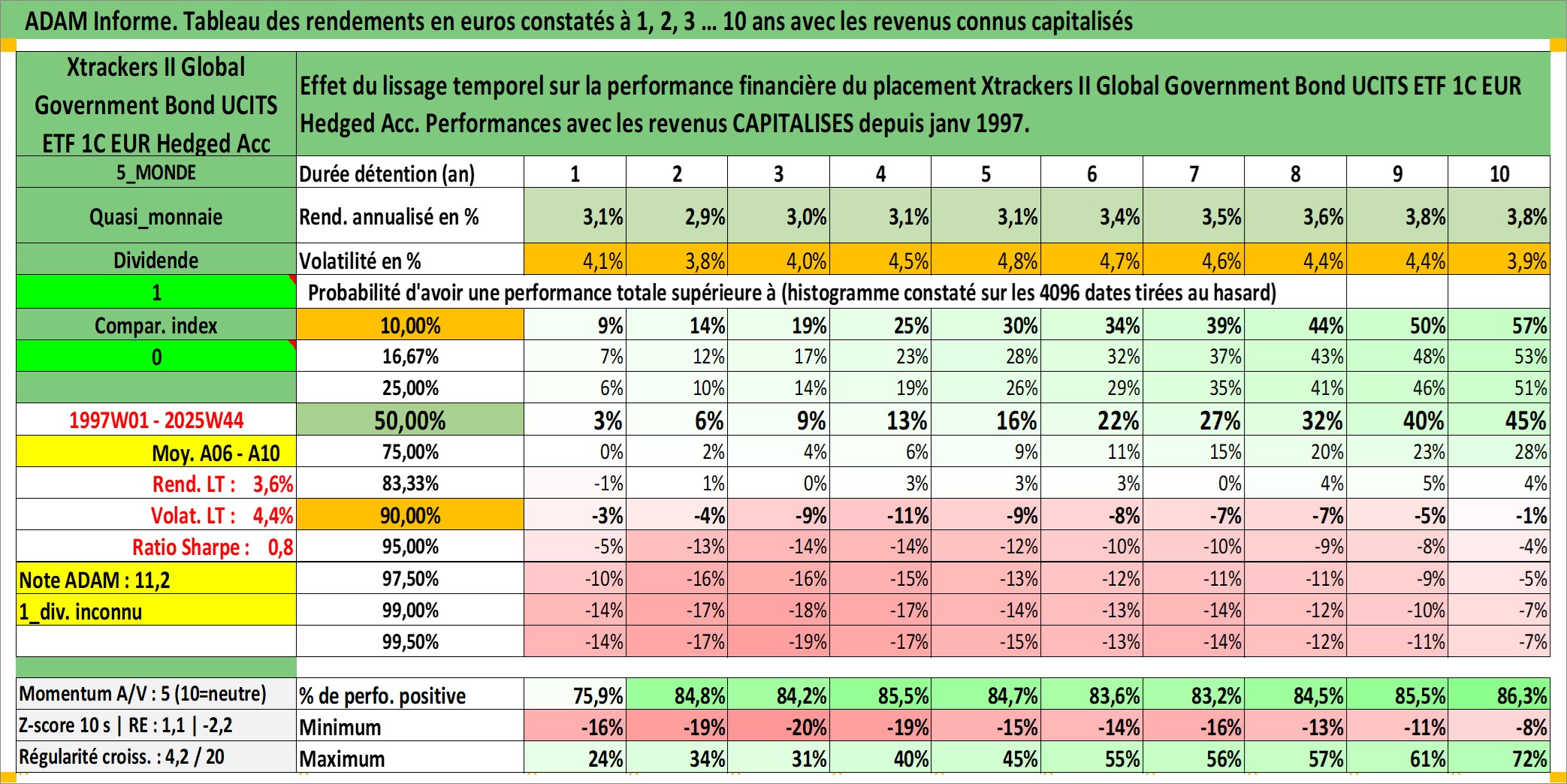 Site dédié aux investisseursPage dédiée sur site financeAnalyse des valorisations hebdomadaires du fonds Xtrackers II Global Government Bond UCITS ETF 1C EUR Hedged Acc. Cet actif est cote en EUR. Les valorisations couvrent les semaines 1997W01 a 2025W44. Les revenus de cet actif financier sont pris en compte depuis la semaine 1997W01. La note ESG de cet actif n'est pas connue.