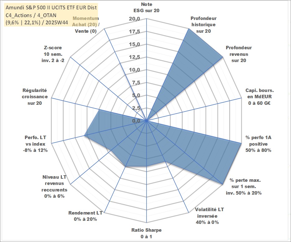 Site dédié aux investisseursPage dédiée sur site financeAnalyse des valorisations hebdomadaires du fonds Amundi S&P 500 II UCITS ETF EUR Dist. Cet actif est cote en EUR. Les valorisations couvrent les semaines 1997W01 a 2025W44. Les revenus de cet actif financier sont pris en compte depuis la semaine 1997W28. La note ESG de cet actif n'est pas connue.