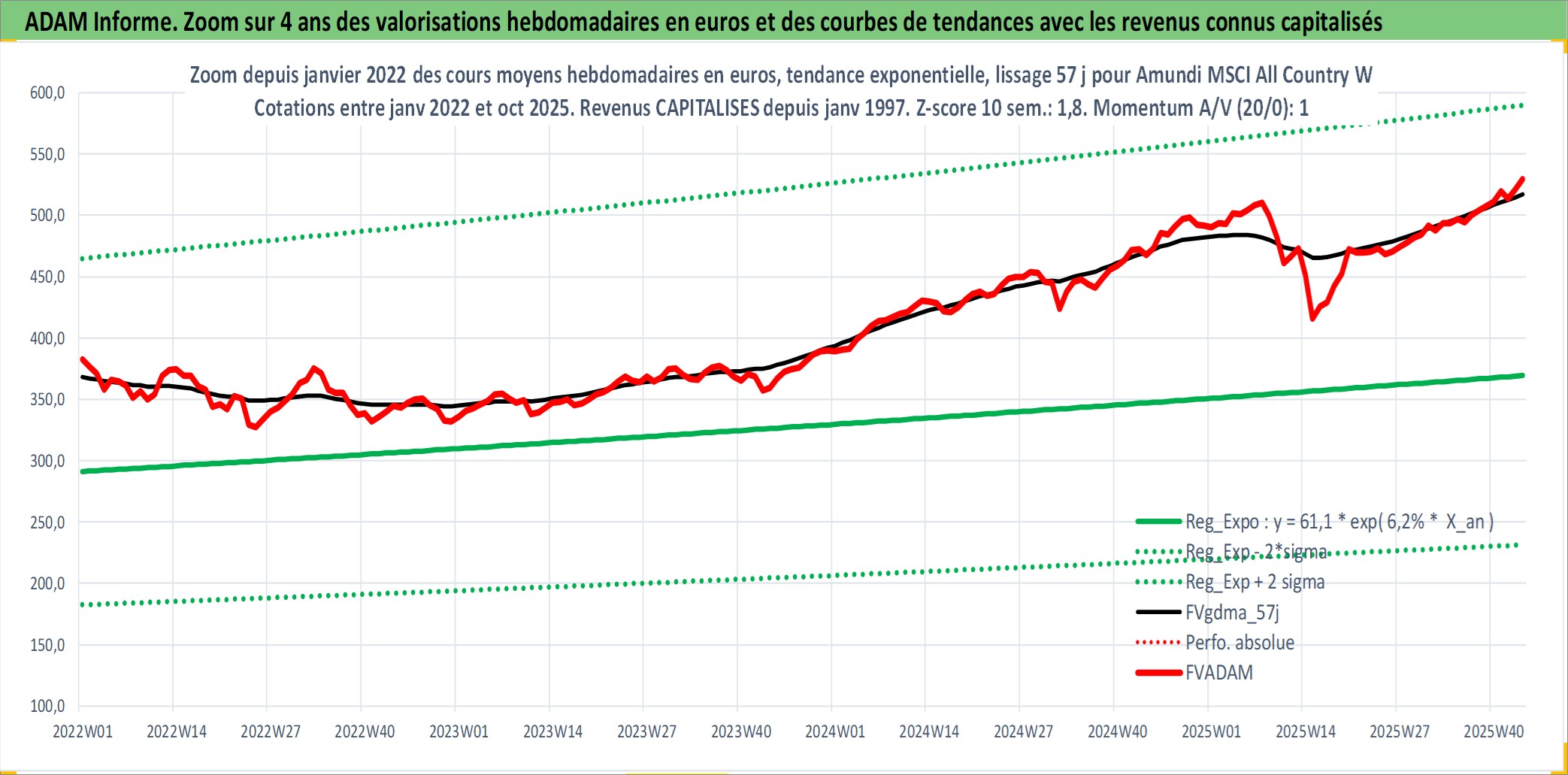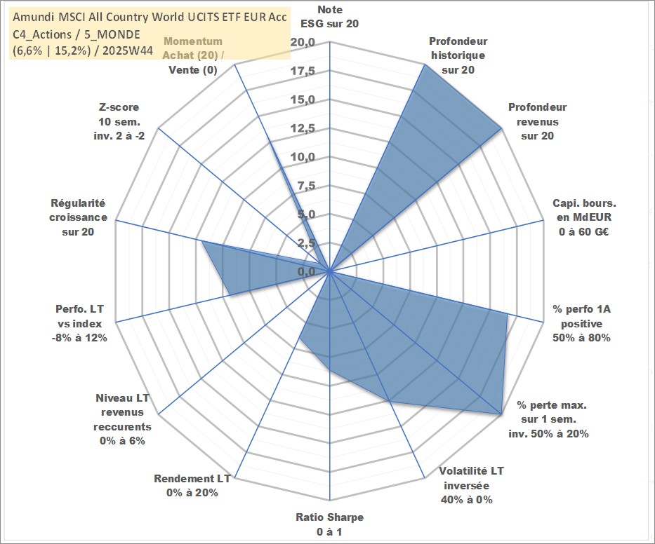 Site dédié aux investisseursPage dédiée sur site financeAnalyse des valorisations hebdomadaires du fonds Amundi MSCI All Country World UCITS ETF EUR Acc. Cet actif est cote en EUR. Les valorisations couvrent les semaines 1997W01 a 2025W44. Les revenus de cet actif financier sont pris en compte depuis la semaine 1997W01. La note ESG de cet actif n'est pas connue.