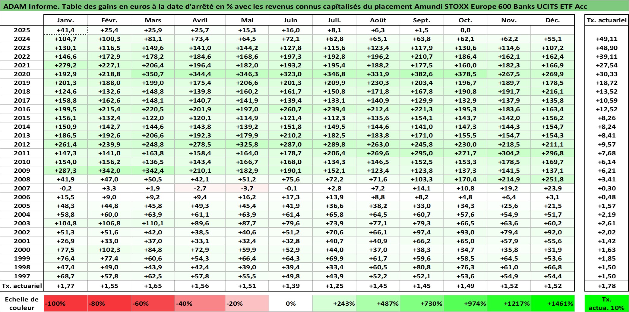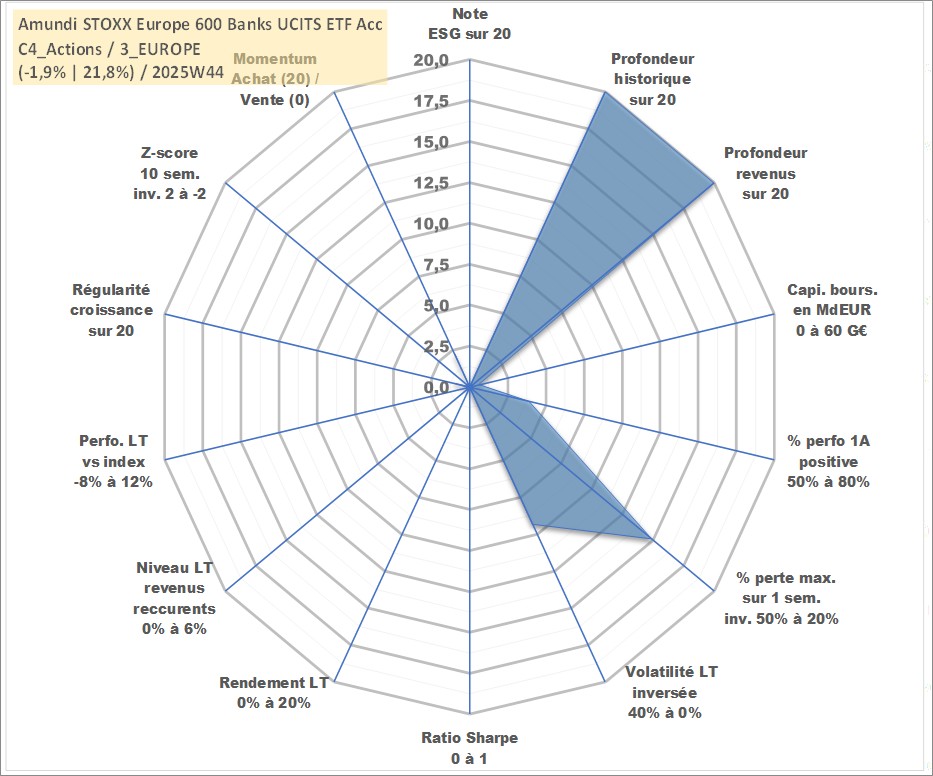 Site dédié aux investisseursPage dédiée sur site financeAnalyse des valorisations hebdomadaires du fonds Amundi STOXX Europe 600 Banks UCITS ETF Acc. Cet actif est cote en EUR. Les valorisations couvrent les semaines 1997W01 a 2025W44. Les revenus de cet actif financier sont pris en compte depuis la semaine 1997W01. La note ESG de cet actif n'est pas connue.