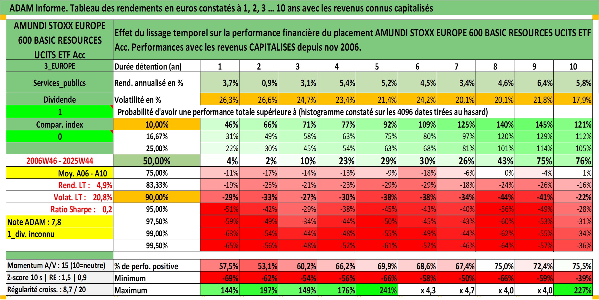 Site dédié aux investisseursPage dédiée sur site financeAnalyse des valorisations hebdomadaires du fonds AMUNDI STOXX EUROPE 600 BASIC RESOURCES UCITS ETF Acc. Cet actif est cote en EUR. Les valorisations couvrent les semaines 2006W46 a 2025W44. Les revenus de cet actif financier sont pris en compte depuis la semaine 2006W46. La note ESG de cet actif n'est pas connue.