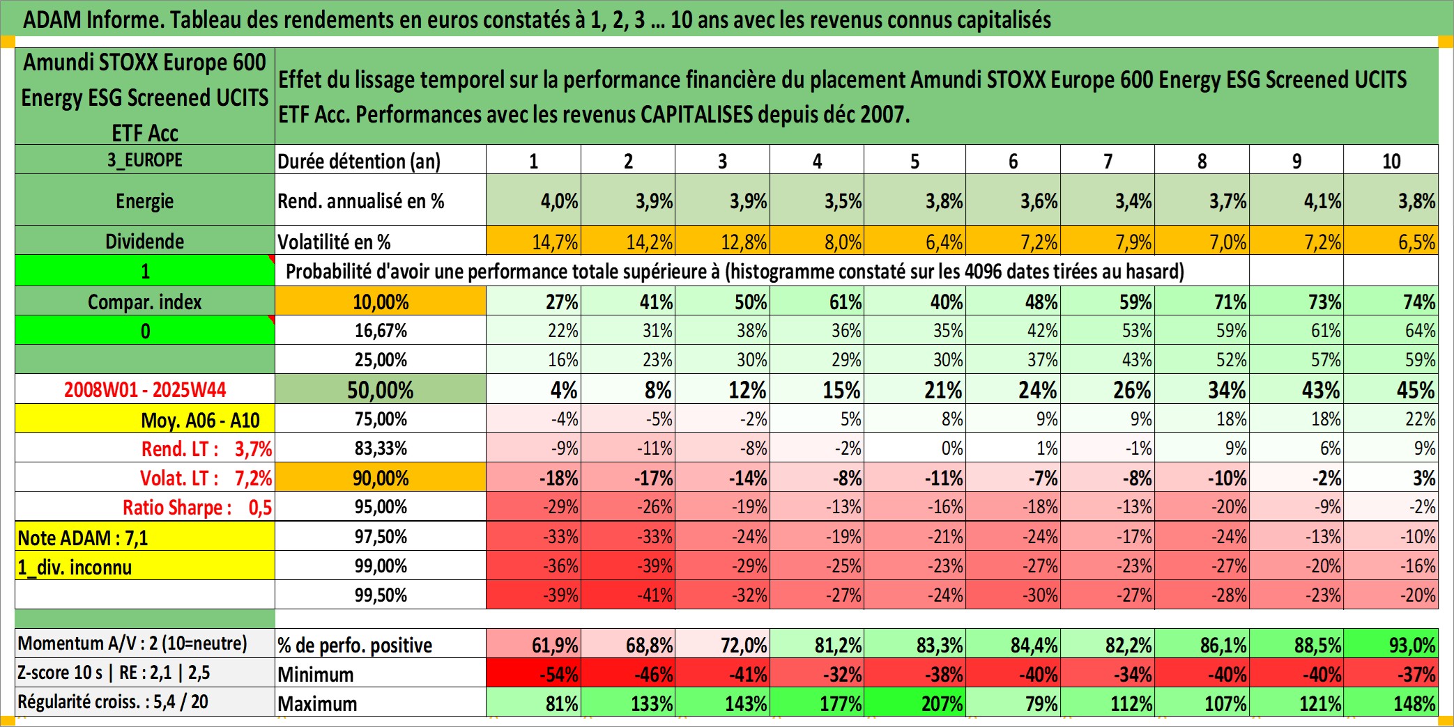 Site dédié aux investisseursPage dédiée sur site financeAnalyse des valorisations hebdomadaires du fonds Amundi STOXX Europe 600 Energy ESG Screened UCITS ETF Acc. Cet actif est cote en EUR. Les valorisations couvrent les semaines 2008W01 a 2025W44. Les revenus de cet actif financier sont pris en compte depuis la semaine 2008W01. La note ESG de cet actif n'est pas connue.