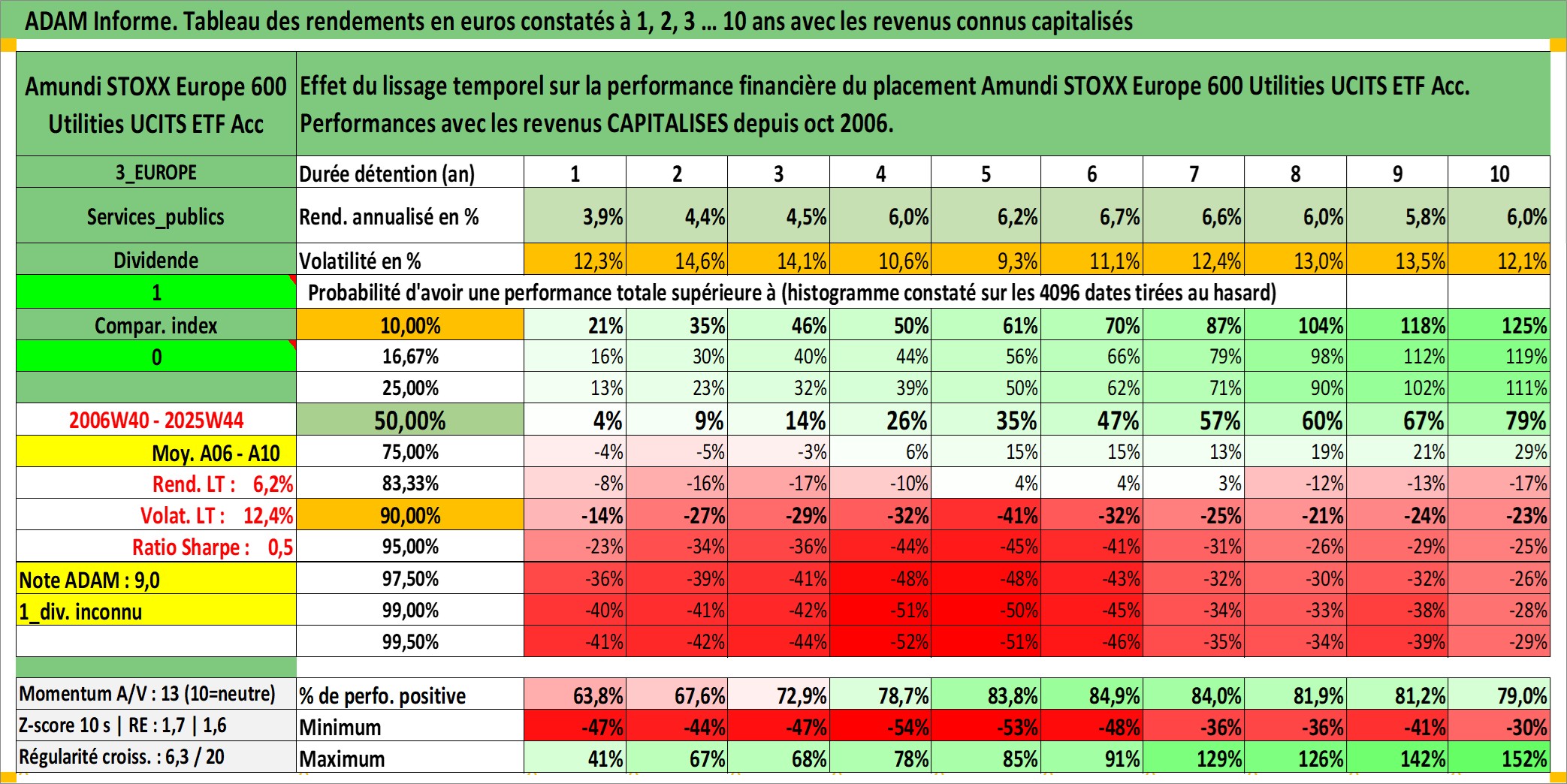 Site dédié aux investisseursPage dédiée sur site financeAnalyse des valorisations hebdomadaires du fonds Amundi STOXX Europe 600 Utilities UCITS ETF Acc. Cet actif est cote en EUR. Les valorisations couvrent les semaines 2006W40 a 2025W44. Les revenus de cet actif financier sont pris en compte depuis la semaine 2006W40. La note ESG de cet actif n'est pas connue.