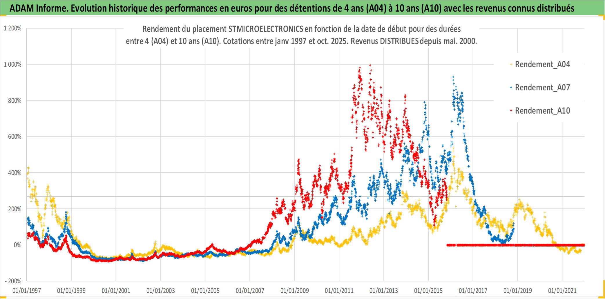 Site dédié aux investisseursPage dédiée sur site financeAnalyse des valorisations hebdomadaires de l'action STMICROELECTRONICS. Cet actif est cote en EUR. Les valorisations couvrent les semaines 1997W01 a 2025W44. Les revenus de cet actif financier sont pris en compte depuis la semaine 2000W18. La note ESG de cet actif n'est pas connue.