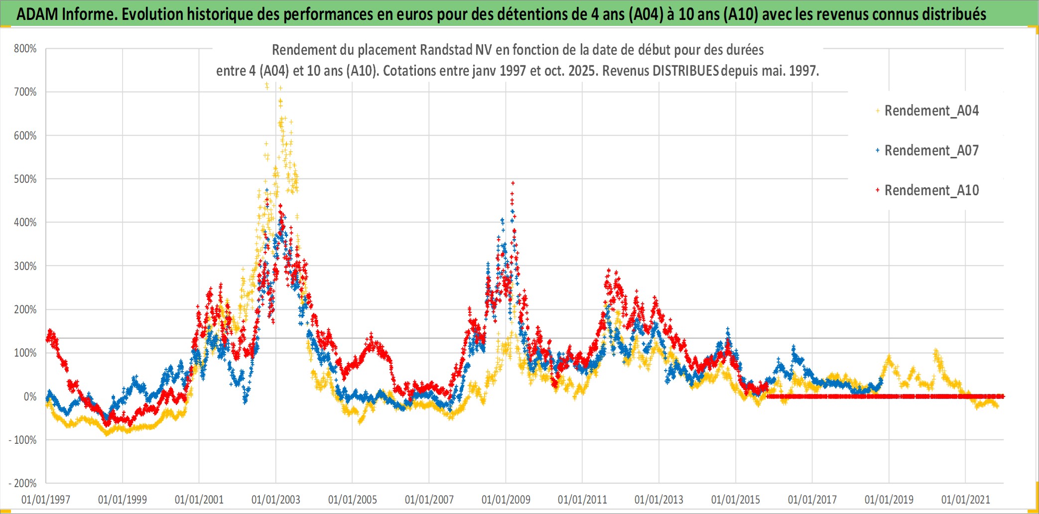 Site dédié aux investisseursPage dédiée sur site financeAnalyse des valorisations hebdomadaires de l'action Randstad NV. Cet actif est cote en EUR. Les valorisations couvrent les semaines 1997W01 a 2025W44. Les revenus de cet actif financier sont pris en compte depuis la semaine 1997W21. La note globale ESG de cet actif est estimee a 16.0 (apres rebasage entre 0 et 20).