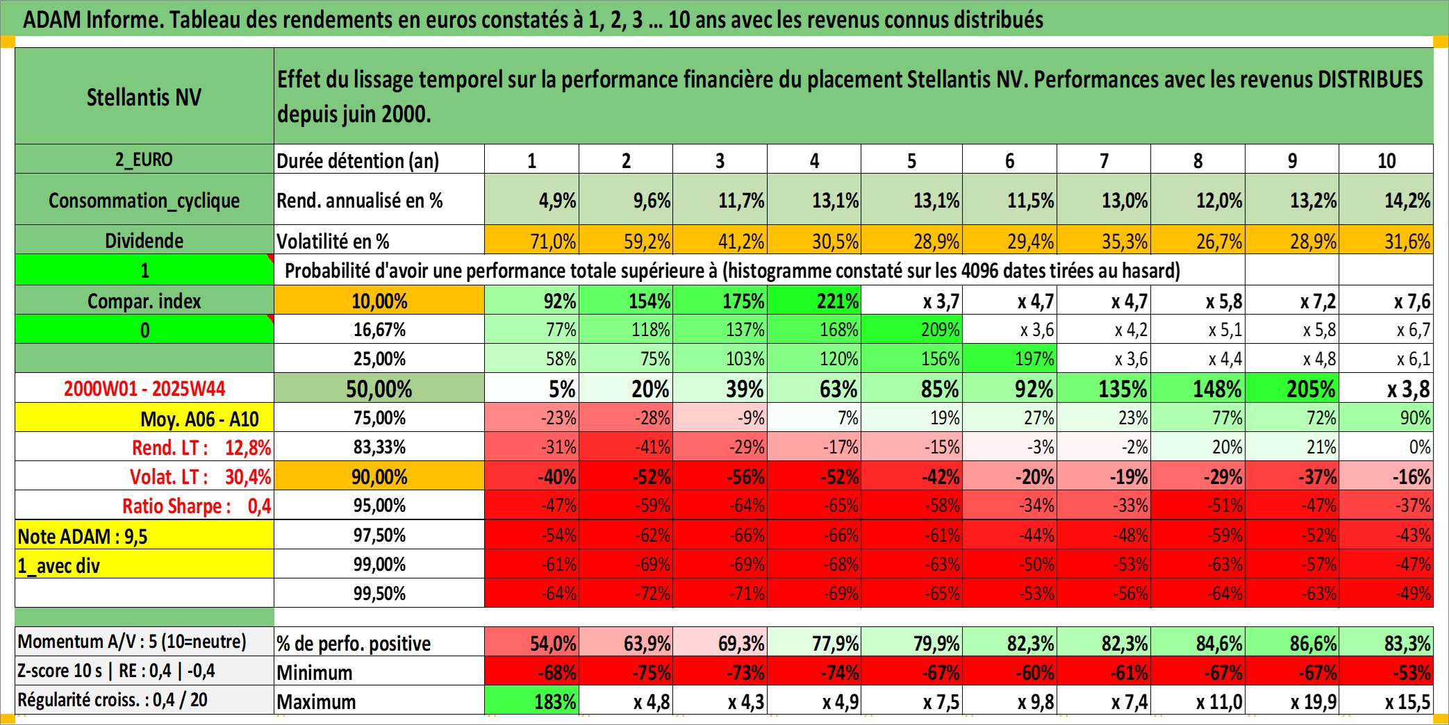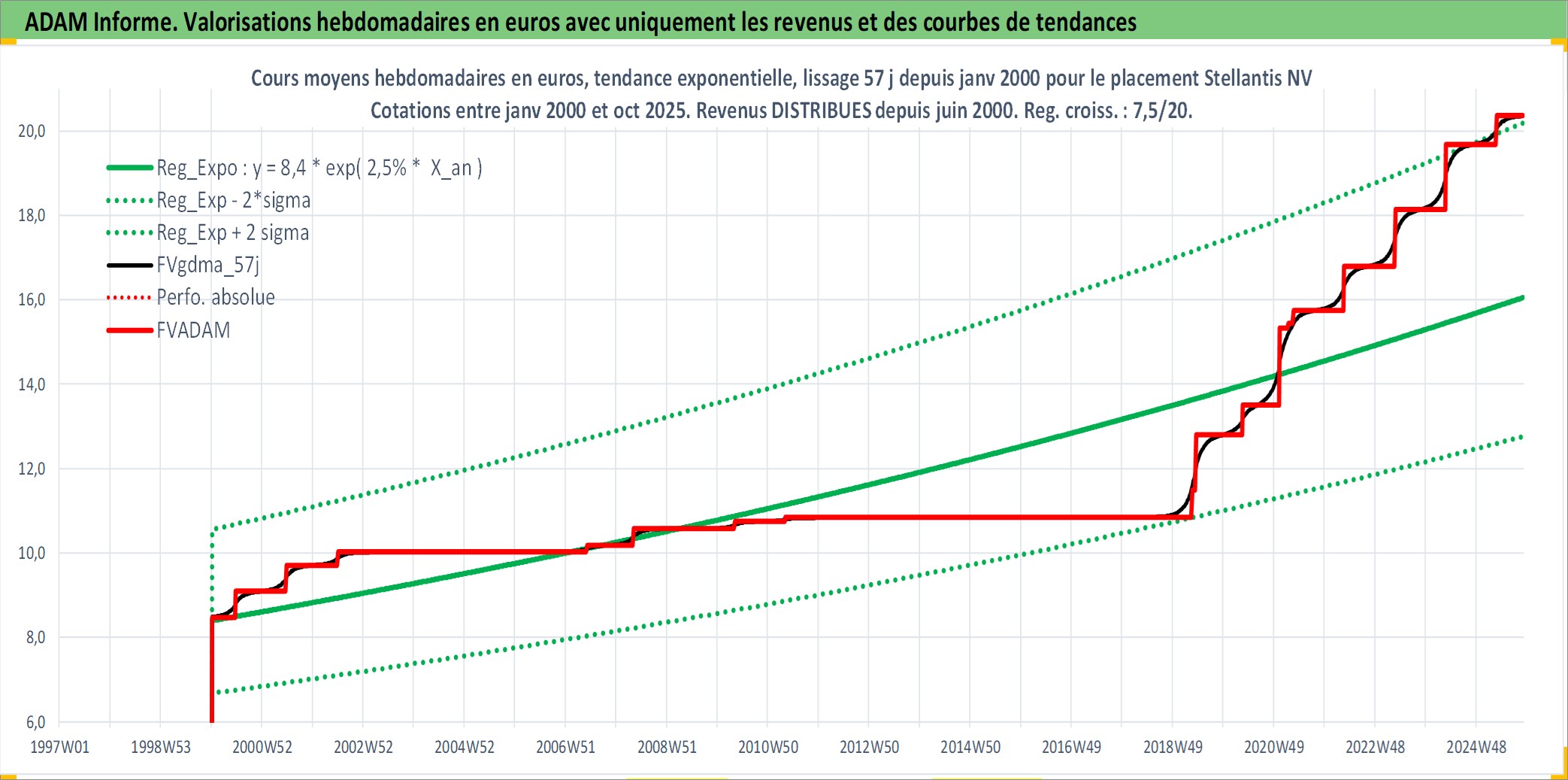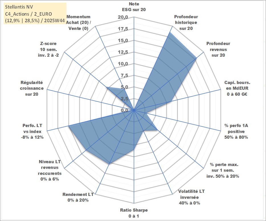 Site dédié aux investisseursPage dédiée sur site financeAnalyse des valorisations hebdomadaires de l'action Stellantis NV. Cet actif est cote en EUR. Les valorisations couvrent les semaines 2000W01 a 2025W44. Les revenus de cet actif financier sont pris en compte depuis la semaine 2000W25. La note ESG de cet actif n'est pas connue.