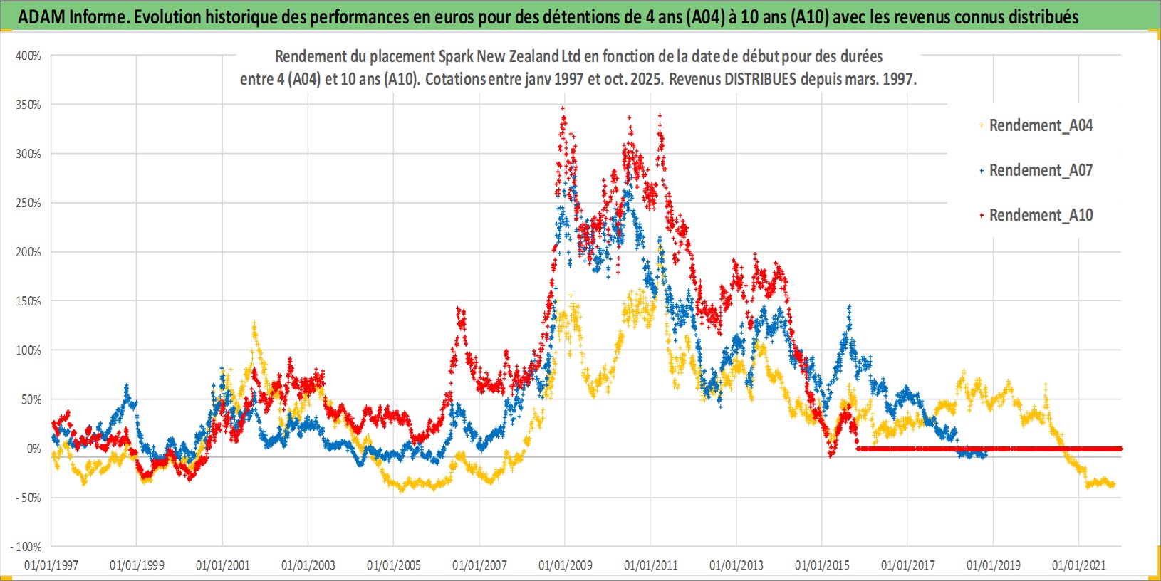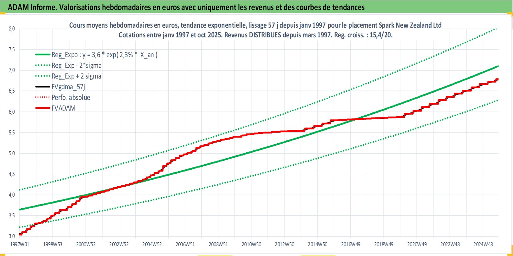 Site dédié aux investisseursPage dédiée sur site financeAnalyse des valorisations hebdomadaires de l'action Spark New Zealand Ltd. Cet actif est cote en AUD. Les valorisations sont en contrevaleur EURO et couvrent les semaines 1997W01 a 2025W44. Les revenus de cet actif financier sont pris en compte depuis la semaine 1997W09. La note ESG de cet actif n'est pas connue.