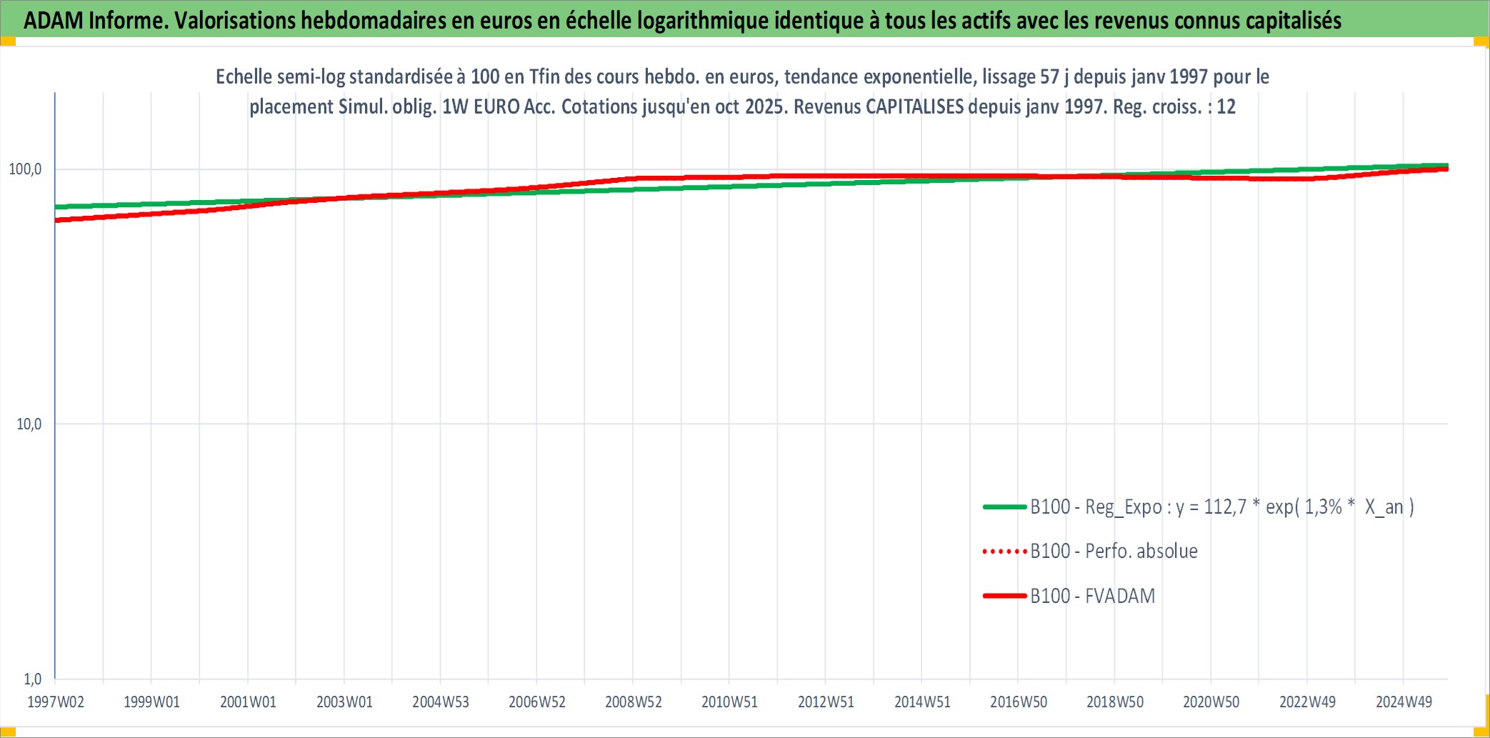 Site dédié aux investisseursPage dédiée sur site financeAnalyse des valorisations hebdomadaires de l'action Simul. oblig. 1W EURO Acc. Cet actif est cote en EUR. Les valorisations couvrent les semaines 1997W01 a 2025W44. Les revenus de cet actif financier sont pris en compte depuis la semaine 1997W01. La note ESG de cet actif n'est pas connue.
