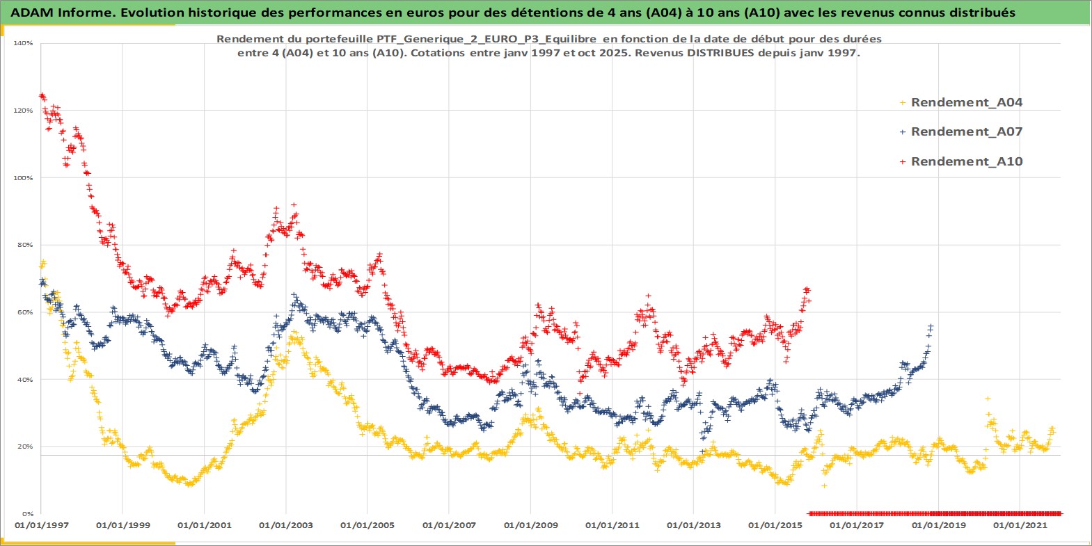 Site dédié aux investisseursPage dédiée sur site financeAnalyse des valorisations hebdomadaires du portefeuille PTF_Generique_2_EURO_P3_Equilibre_8actifs avec un profil P3_Equilibre. Ce portefeuille est cote en EUR. Les valorisations couvrent les semaines 1997W01 a 2025W44. Les revenus de cet actif financier sont pris en compte depuis la semaine 1997W01. La note ESG de cet actif n'est pas connue.