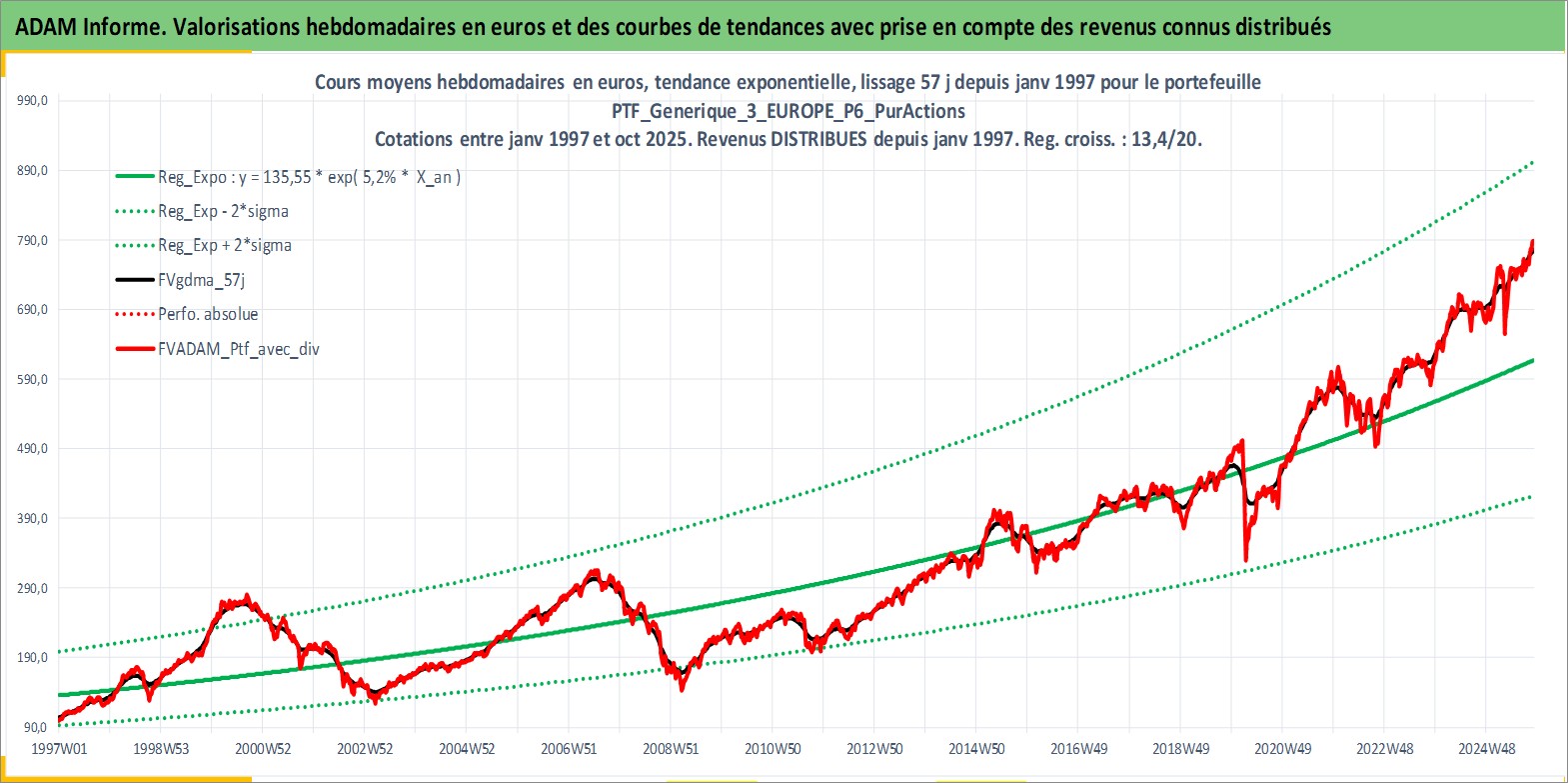 Site dédié aux investisseursPage dédiée sur site financeAnalyse des valorisations hebdomadaires du portefeuille PTF_Generique_3_EUROPE_P6_PurActions_3actifs avec un profil P6_PurActions. Ce portefeuille est cote en EUR. Les valorisations couvrent les semaines 1997W01 a 2025W44. Les revenus de cet actif financier sont pris en compte depuis la semaine 1997W01. La note ESG de cet actif n'est pas connue.