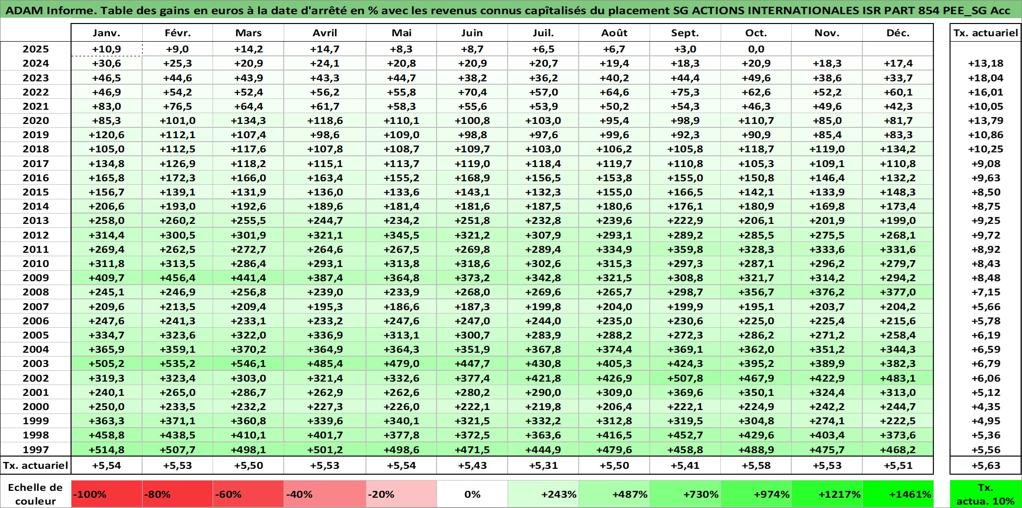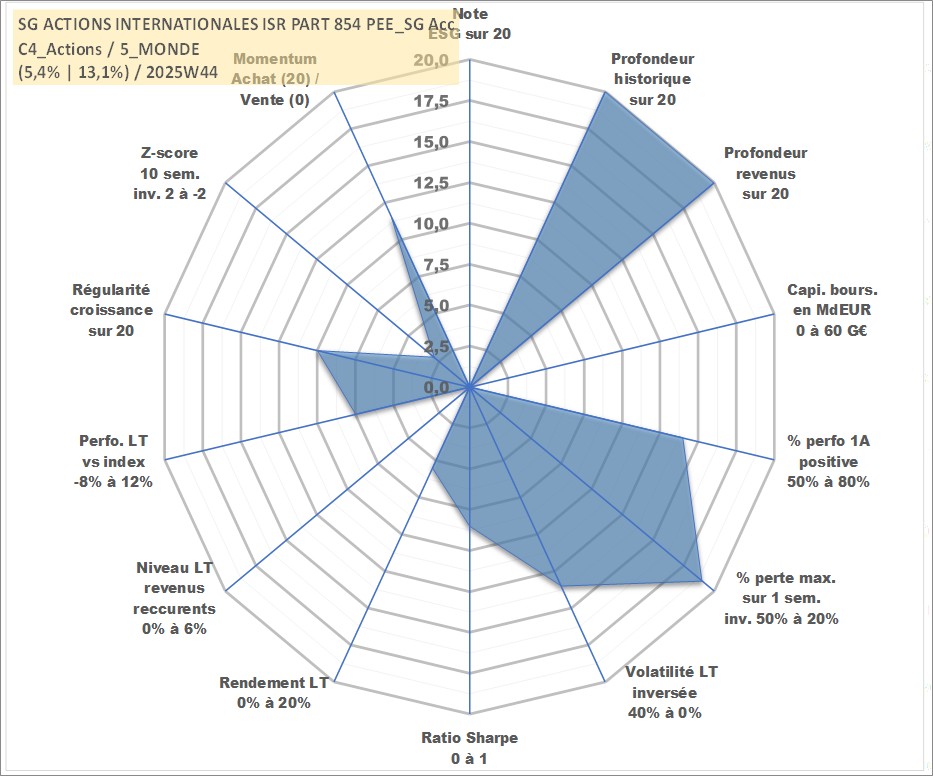 Site dédié aux investisseursPage dédiée sur site financeAnalyse des valorisations hebdomadaires du fonds SG ACTIONS INTERNATIONALES ISR PART 854 PEE_SG Acc. Cet actif est cote en EUR. Les valorisations couvrent les semaines 1997W01 a 2025W44. Les revenus de cet actif financier sont pris en compte depuis la semaine 1997W01. La note ESG de cet actif n'est pas connue.